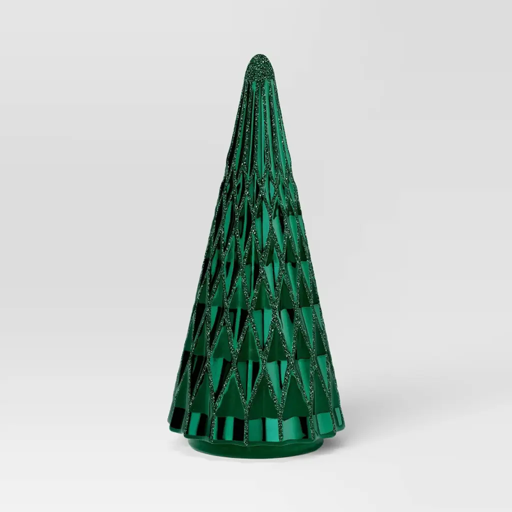Create a gorgeous holiday display with these 3-Count Christmas Trees from Wondershop™. Made from shatterproof plastic, the set includes three teal green trees in different heights with cone silhouettes and glitter highlights for a stunning look. Display them on the mantel or console table or as a centerpiece on your dining table to instantly brighten your space with festive cheer.Welcome to the Wondershop™.