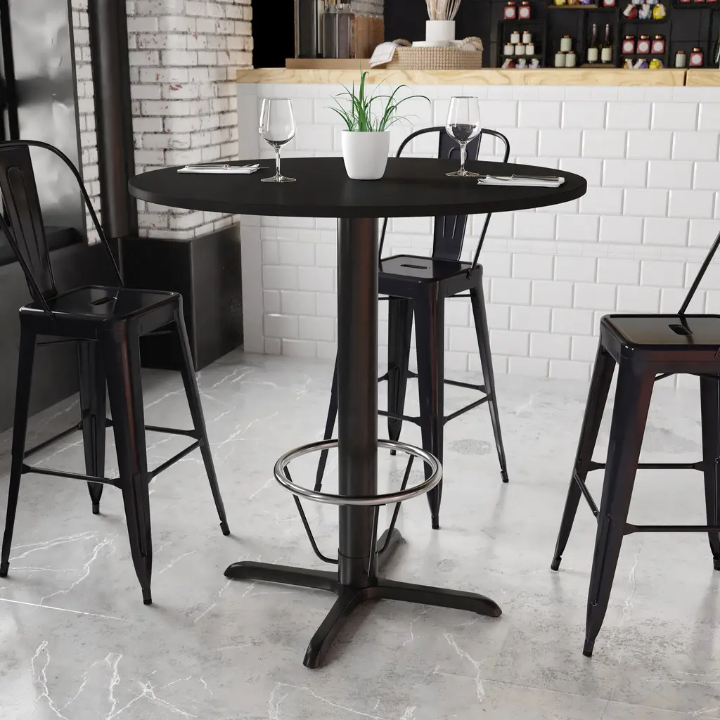 42'' Round Laminate Table Top With 33'' X 33'' Bar Height Table Base And Foot Ring