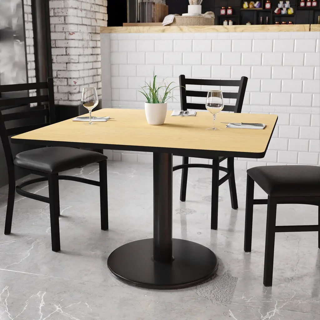 Complete your restaurant, break room or cafeteria with this table top and base configuration.This set is designed for commercial use to withstand the daily rigors in the hospitality industry. This set will also make a great option for your home as a dining table or in the rec room. The reversible top allows you to choose your color of choice and then affix to the base. Surface is heat, scratch and moisture resistant. Use a mild detergent and water, dry clean to keep your tables spotless.Whether you are just starting your business or upgrading your furniture this table set will complete the look.