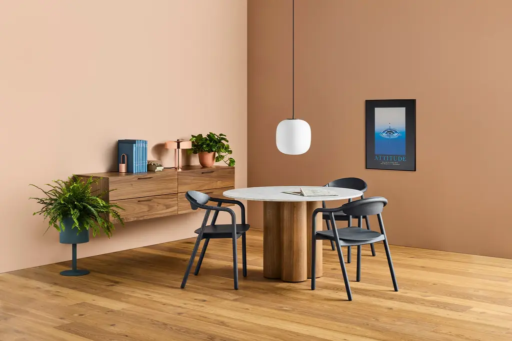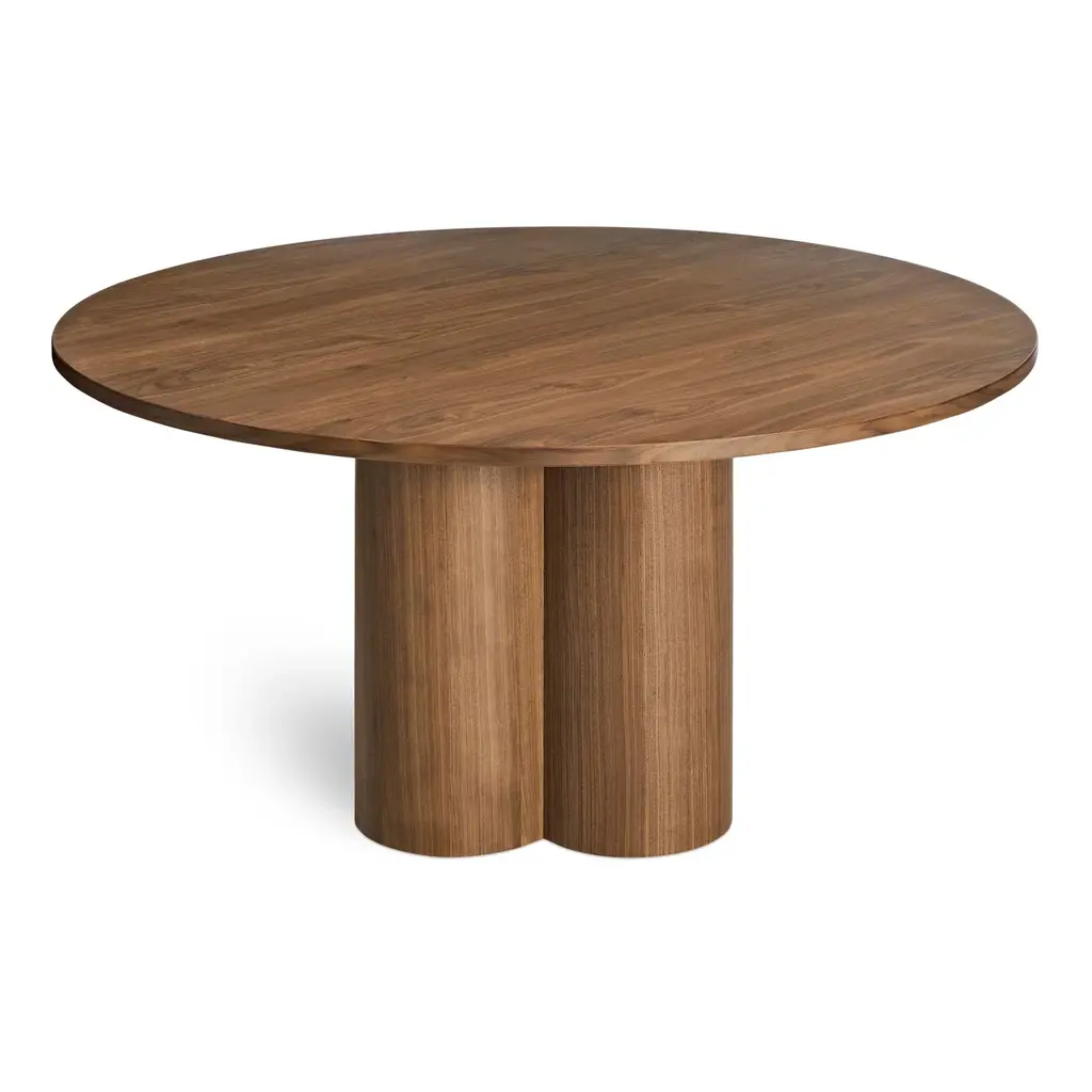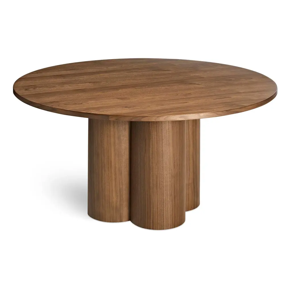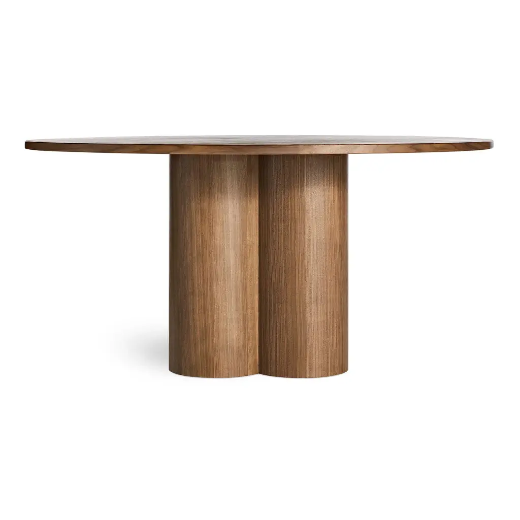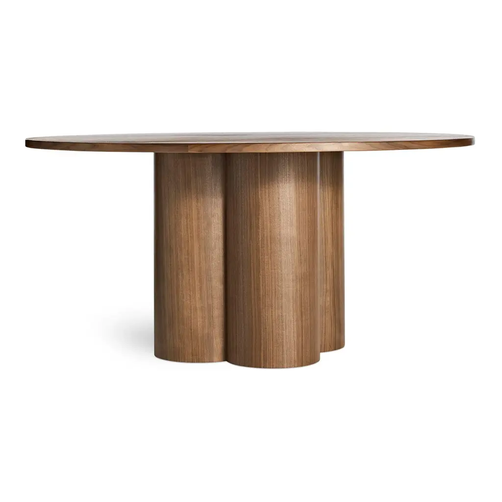 Four pillars merge to create a beguiling combination of forms and a chunky, yet elegant clover-shaped pedestal. Top it off with a hefty slab of wood or Banswara marble followed by a five-course feast. Minimal and delightful, anyway you slice it.