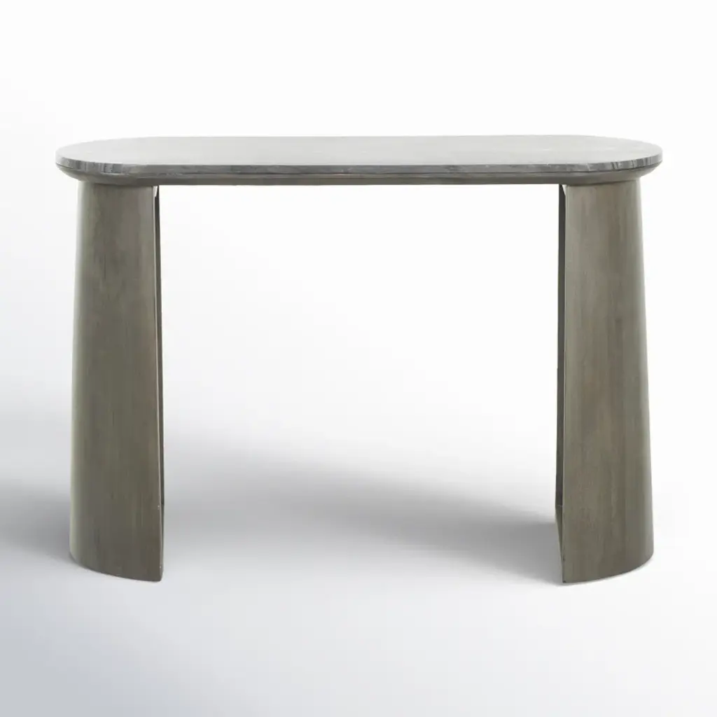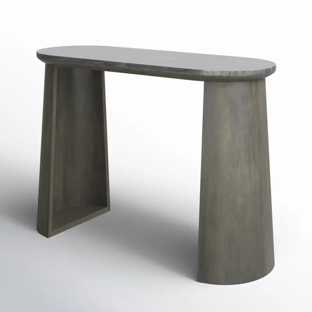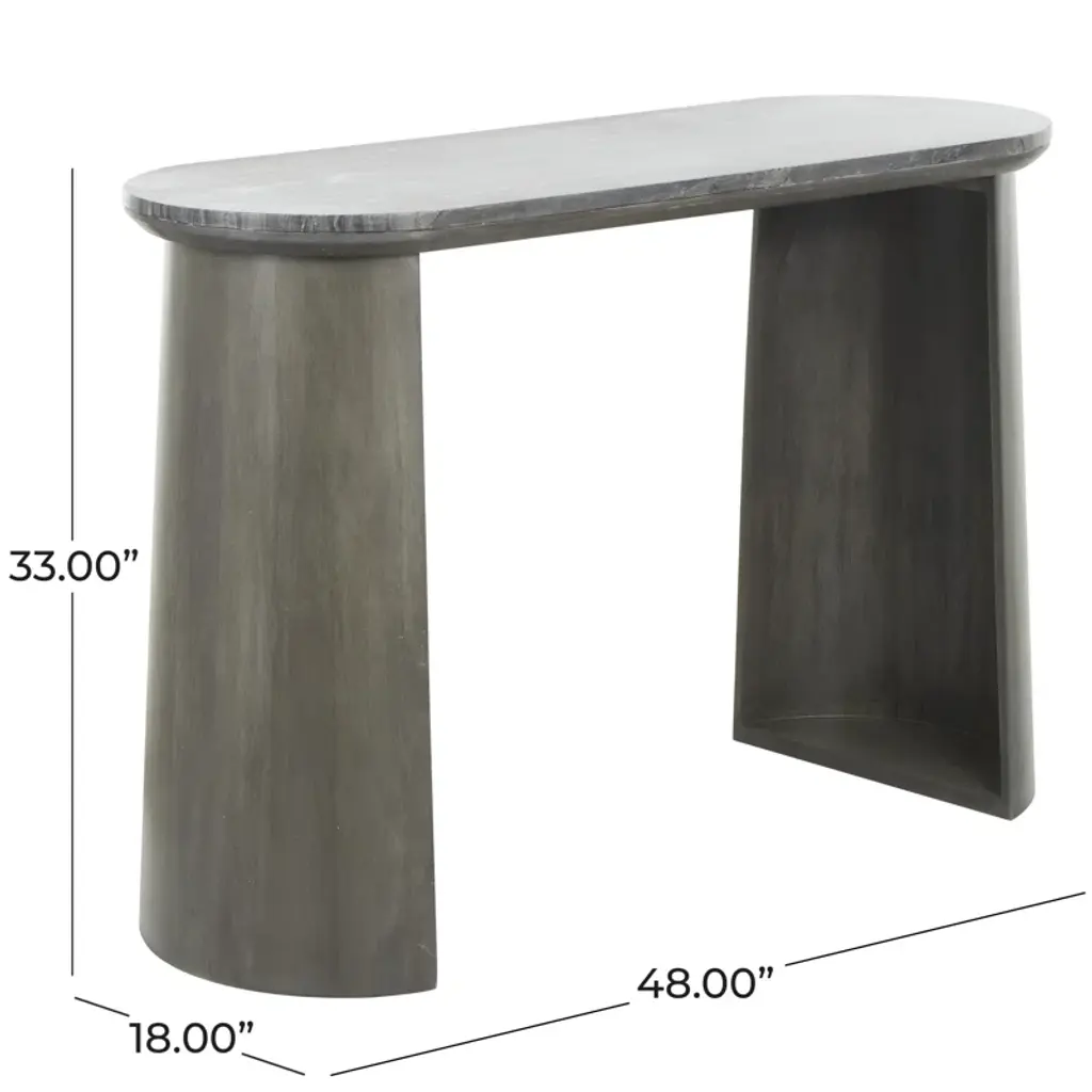Serving as a stylish centerpiece, this console table provides a functional and inviting surface for a delightful dining experience. This is a single black colored mango wood entryway table. Industrial style.