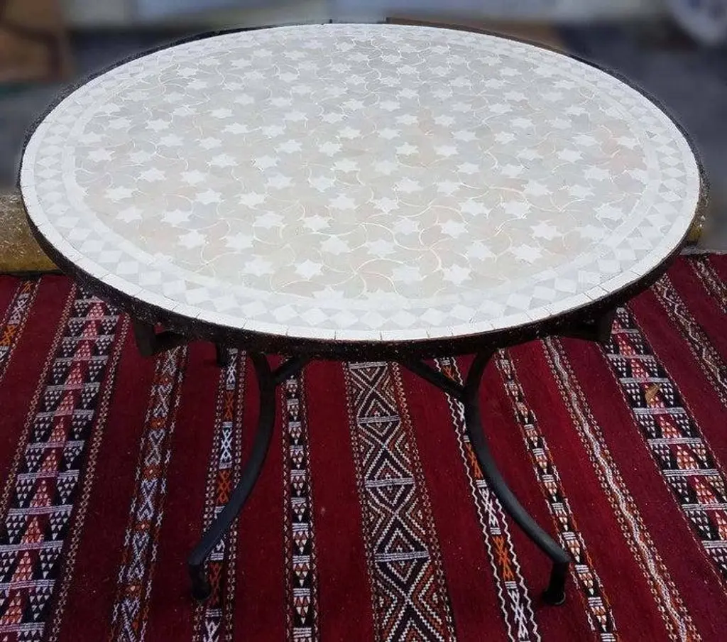 48" Moroccan Beige And White Round Mosaic Table Rafraf