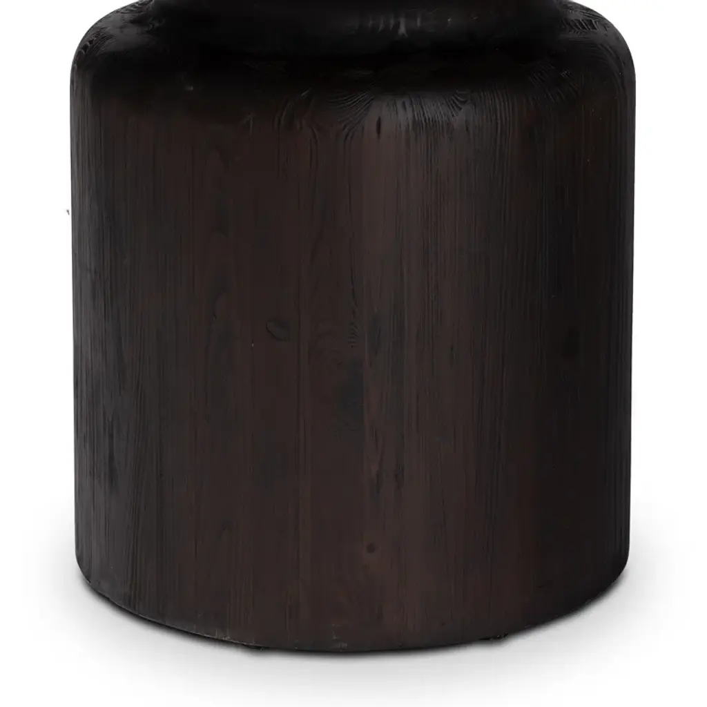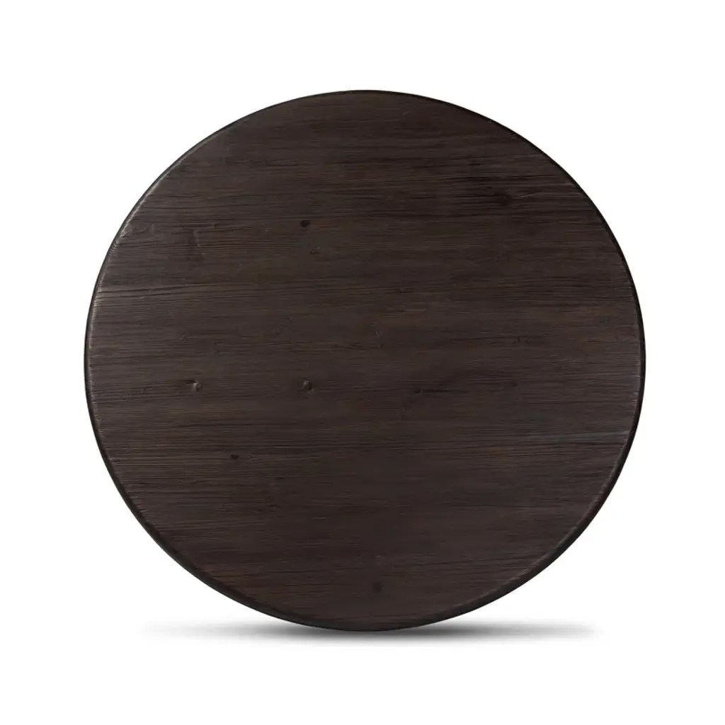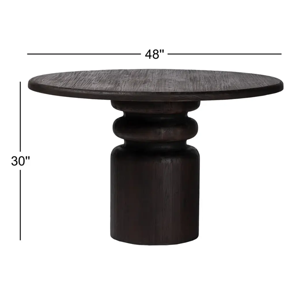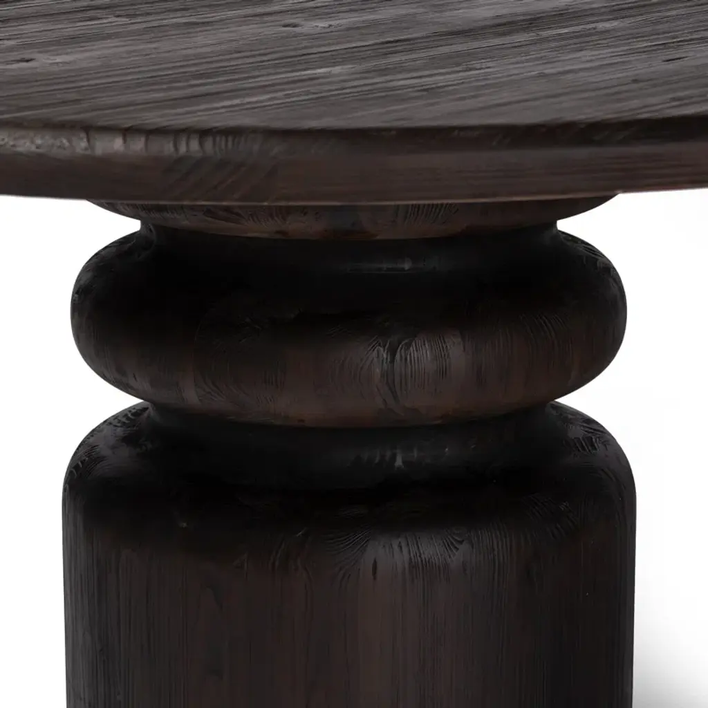 Solid pine pairs with a burnt finish for a warm, antiqued look, while a pedestal-style base and thoughtful detailing update the classic turn-shaped table.