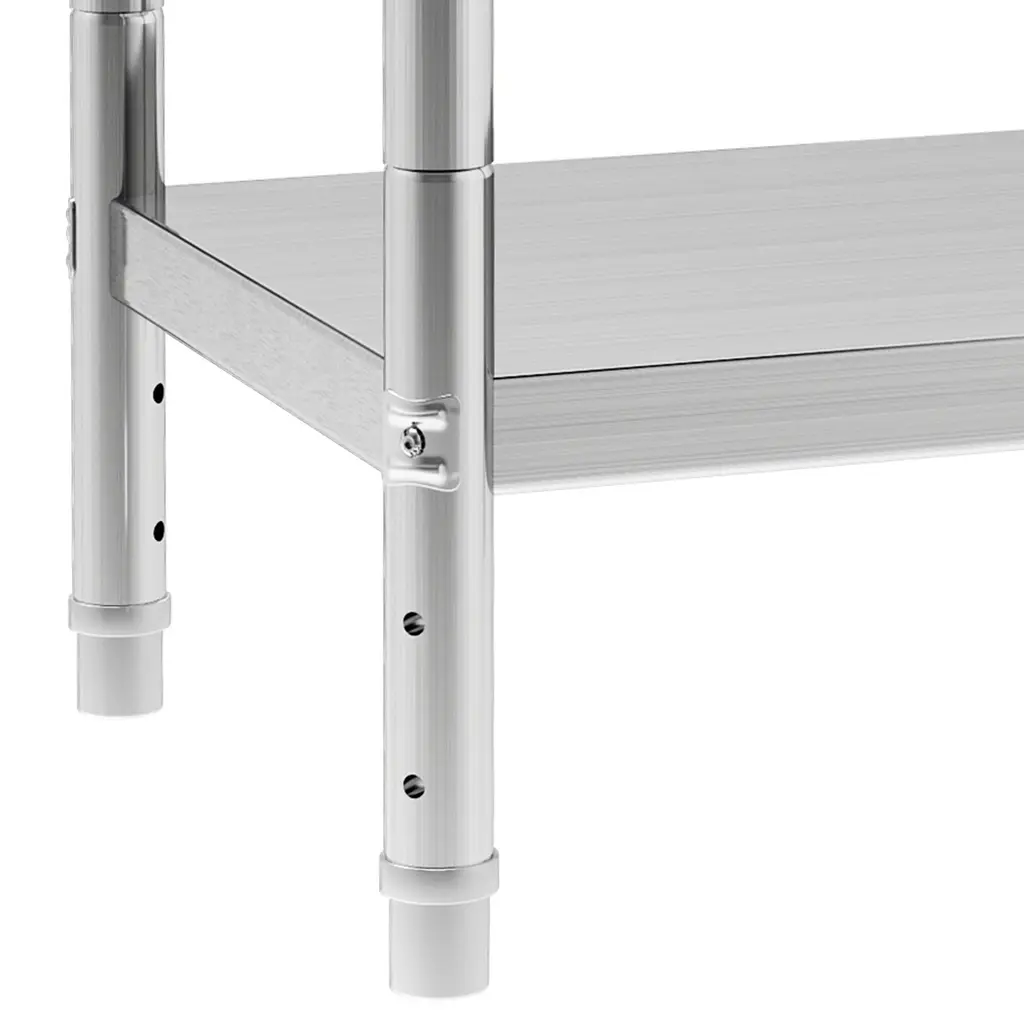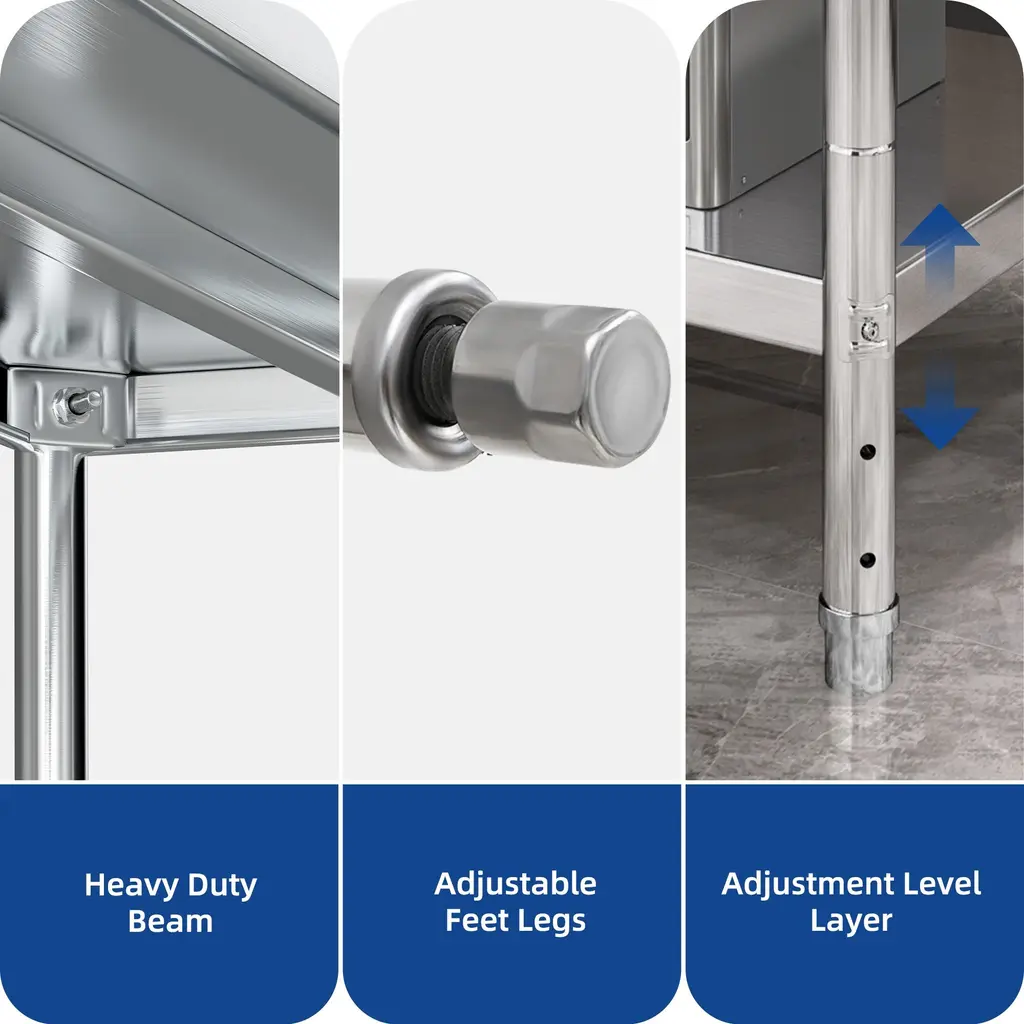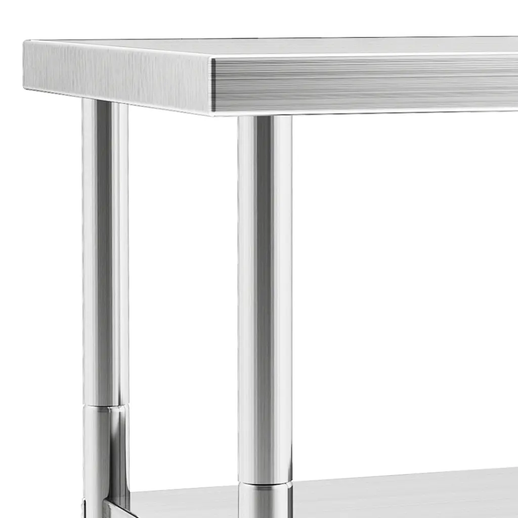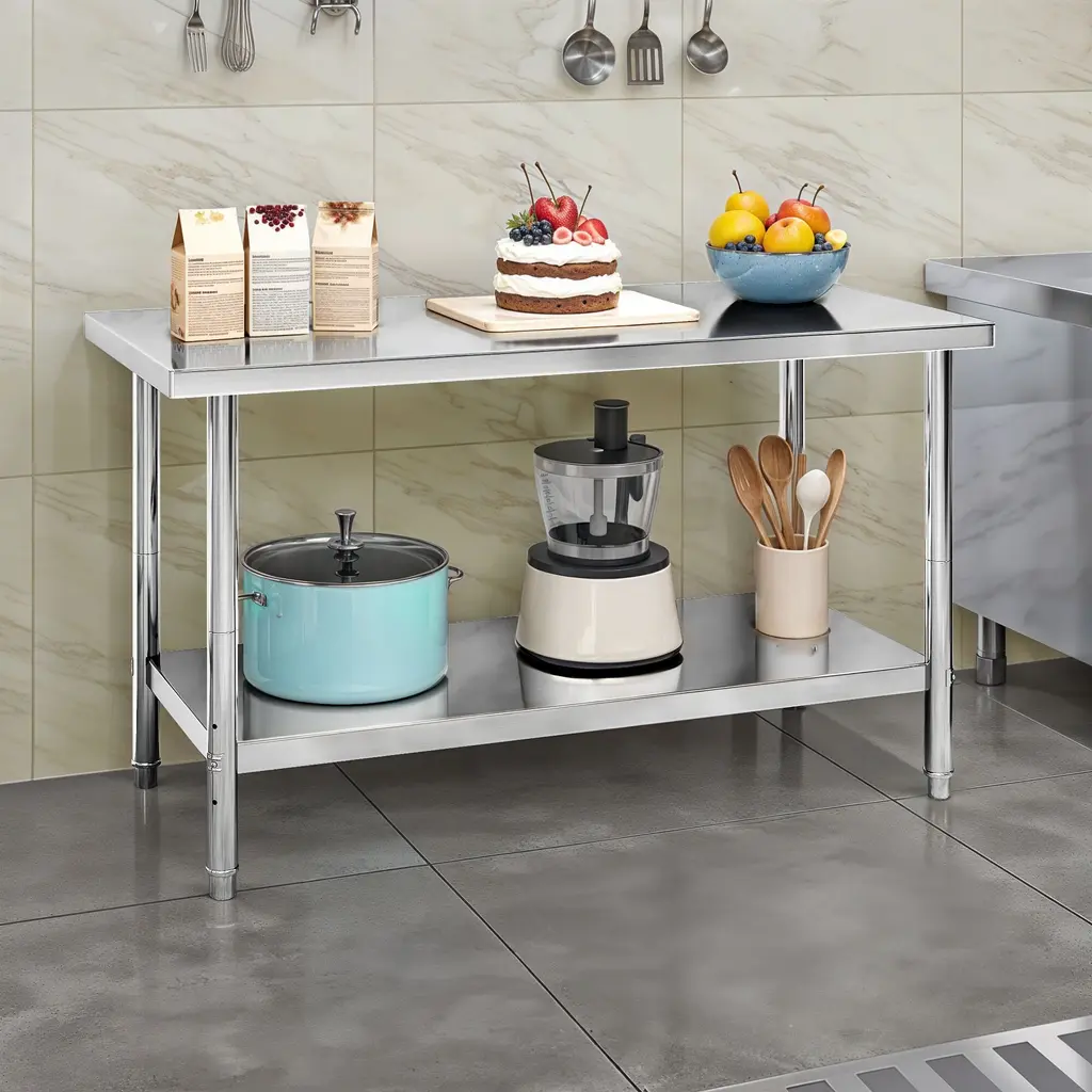 Ready to tackle your toughest tasks, this NSF-certified stainless steel table is the ultimate powerhouse for your kitchen, garage, or workshop. Crafted with rust-proof 201 stainless steel, it offers durability and easy clean-up after every project. The adjustable undershelf and feet let you customize storage while ensuring a steady setup, even on uneven floors. With a heavy-duty frame supporting up to 480 lbs. on top and 360 lbs. on the bottom, this table handles everything from kitchen gear to tools. Assembly's a breeze, so you'll be up and running in no time.Specifications:Color: SilverMaterial: 201 Stainless SteelOverall Size: 24"D x 48"W x 34"HRoom Type: Kitchen, Dining Room, Backyard, Garage, WorkshopAssembly Required:YesPackage Included:1 x Stainless Steel Table1 x Instructions1 x Accessory Kit