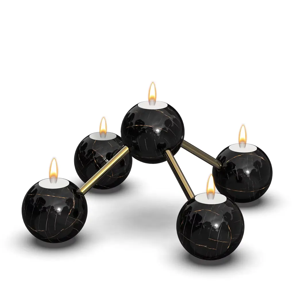 5-Sphere Bramante Black Portoro Marble Candelabra By Adl Atelier Design Lab