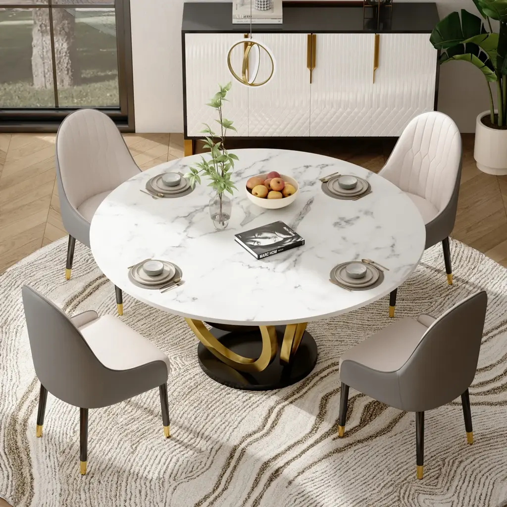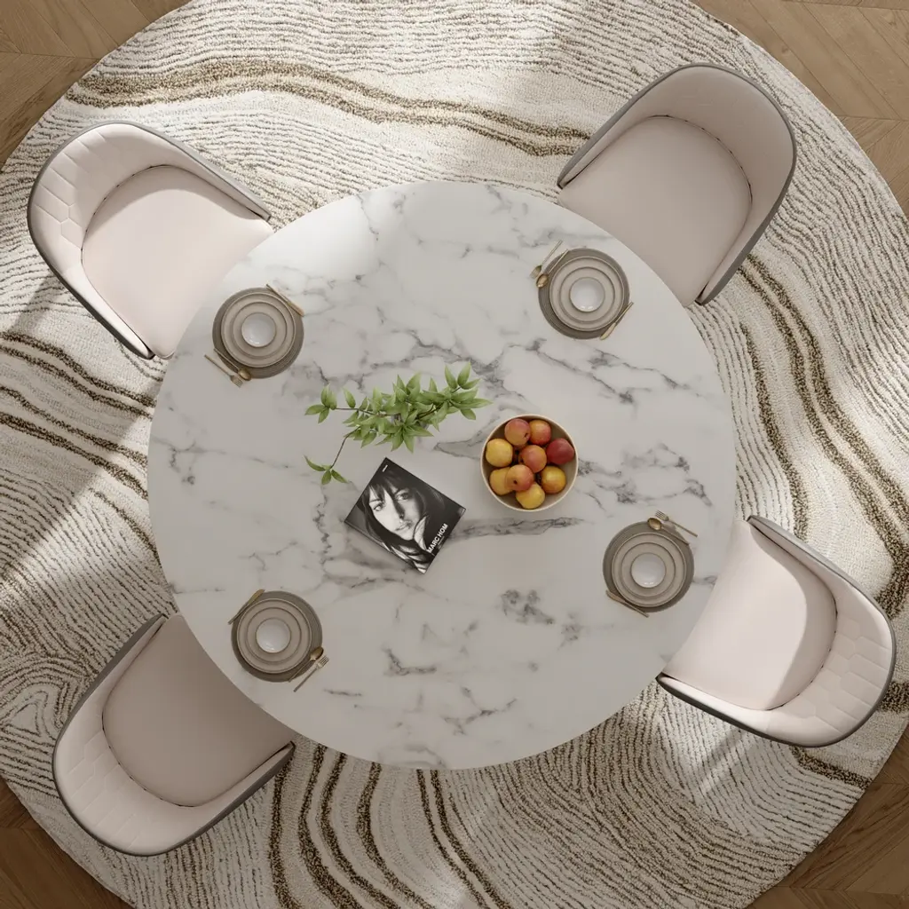 53.1" Modern Style Round Sintered Stone Dining Table Seats 4-6 People