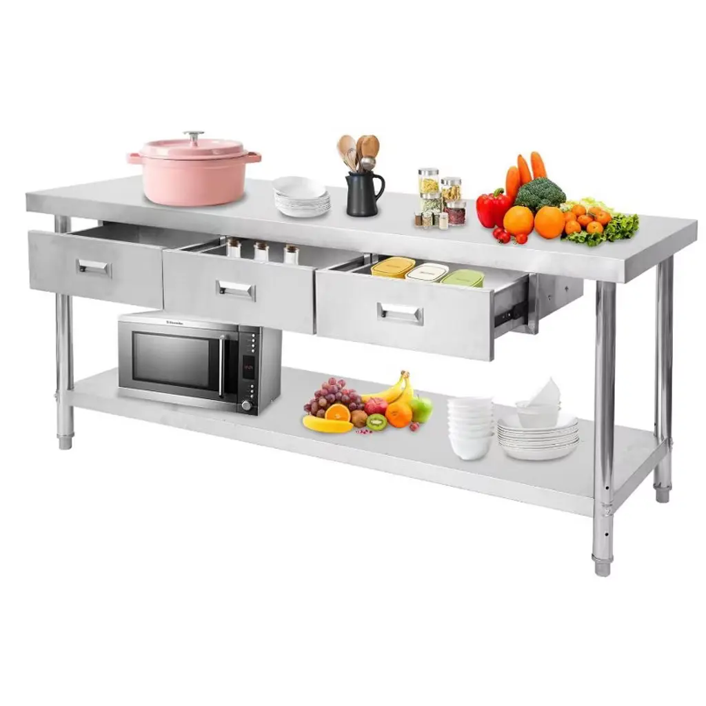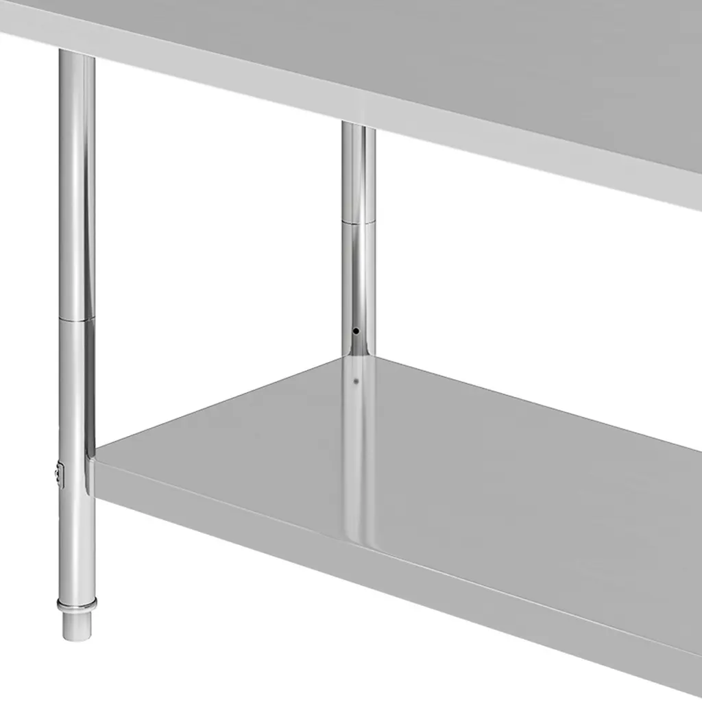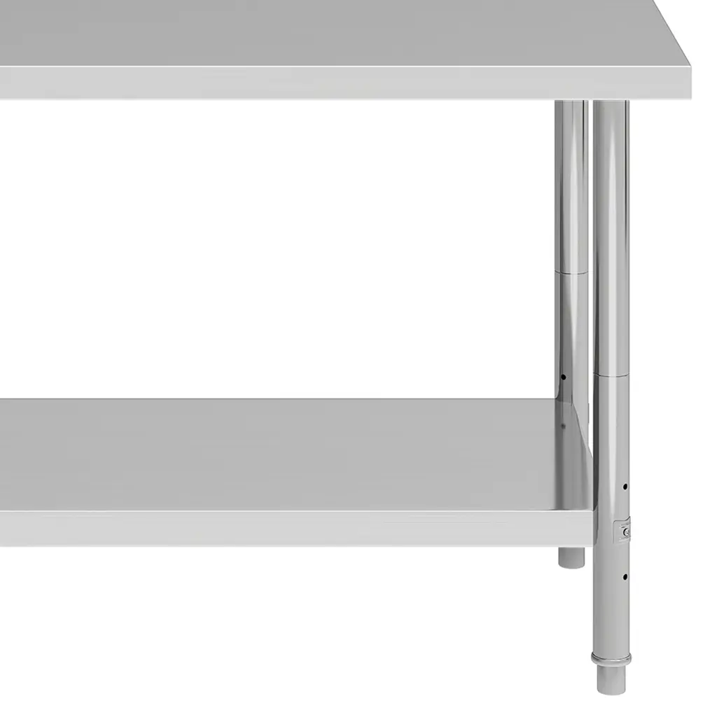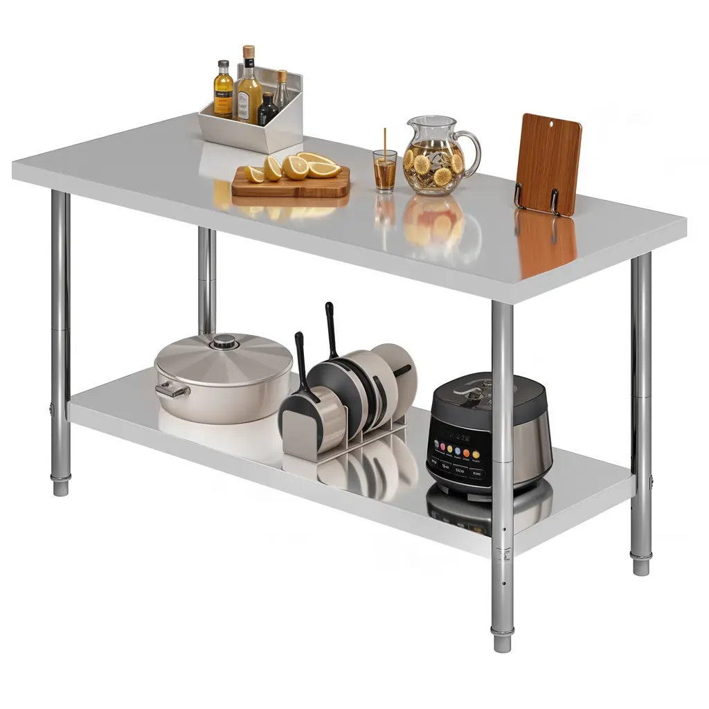 Ready to tackle your toughest tasks, this NSF-certified stainless steel table is the ultimate powerhouse for your kitchen, garage, or workshop. Crafted with rust-proof 201 stainless steel, it offers durability and easy clean-up after every project. The adjustable undershelf and feet let you customize storage while ensuring a steady setup, even on uneven floors. With a heavy-duty frame supporting up to 480 lbs. on top and 360 lbs. on the bottom, this table handles everything from kitchen gear to tools. Assembly's a breeze, so you'll be up and running in no time.Specifications:Color: SilverMaterial: 201 Stainless SteelOverall Size: 24"D x60"W x 34"HRoom Type: Kitchen, Dining Room, Backyard, Garage, WorkshopAssembly Required:YesPackage Included:1 x Stainless Steel Table1 x Instructions1 x Accessory Kit