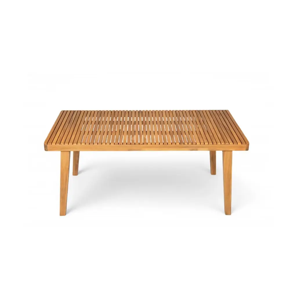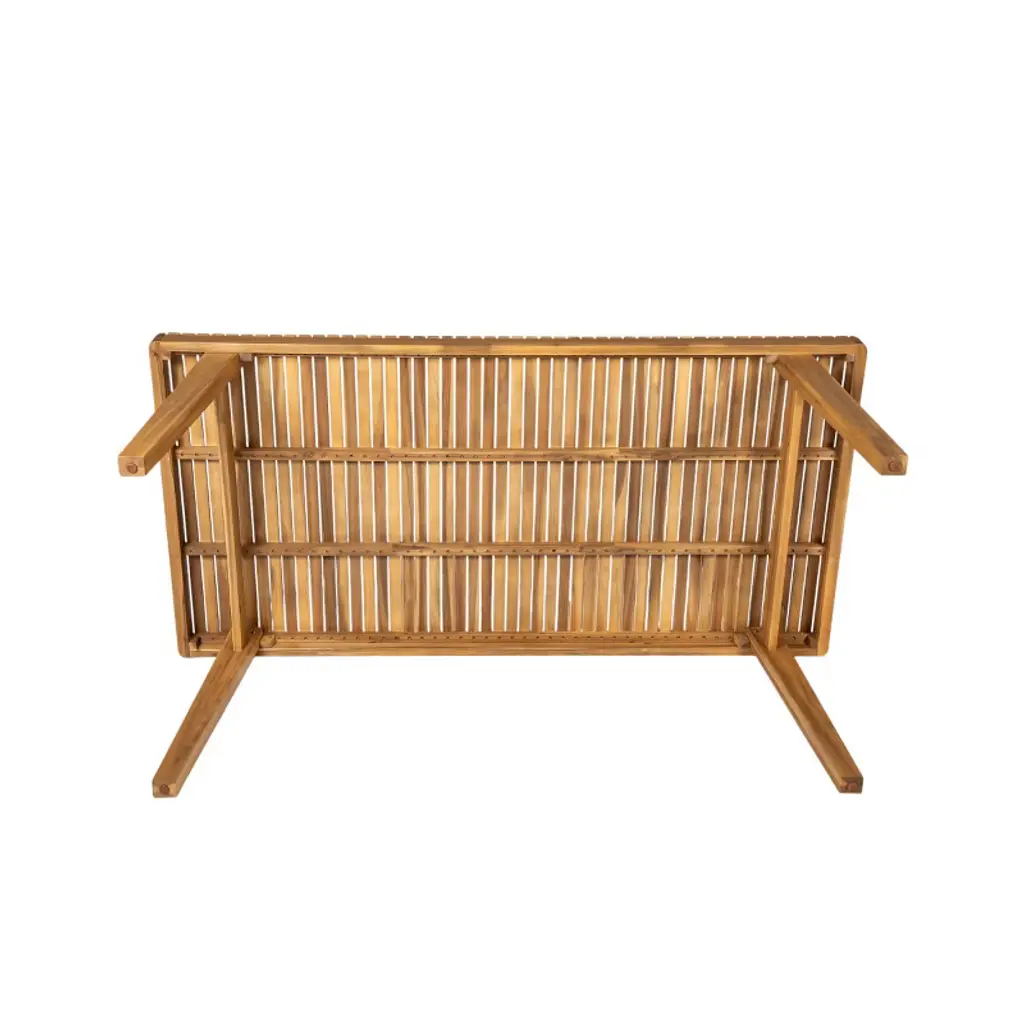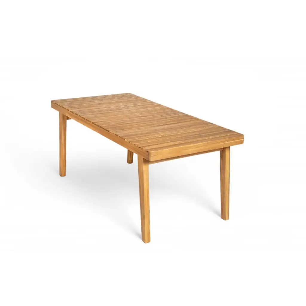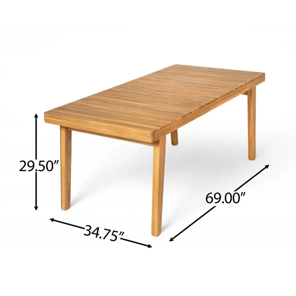 Upgrade your patio or backyard with this acacia wood patio dining table, expertly designed to balance lasting durability and contemporary outdoor style. Crafted entirely from hardwearing acacia wood, this weather resistant outdoor table stands up to sun, rain, and daily use, making it the ideal centerpiece for outdoor gatherings season after season. The modern slatted tabletop not only brings a chic, streamlined look to your space but also allows for rapid drainage after rain, so your surface stays dry and ready for use. Generously sized at 69" wide, this large wooden outdoor dining table easily seats up to six guests, perfect for family meals, festive garden parties, or relaxed weekend brunches. The sturdy rectangular frame offers a 300 lbs weight capacity, so you can confidently display your favorite dishes, drinks, or decorative accents for every occasion. Its classic natural wood finish works beautifully with minimalist, rustic, or modern outdoor furniture, effortlessly elevating the look of any deck, balcony, or backyard. Maintenance is simple—just wipe the easy to clean outdoor table with a damp cloth to keep it looking fresh, even with busy outdoor living. Whether you're hosting summer barbecues or enjoying quiet evenings under the stars, this modern outdoor table for 6 is designed to deliver both function and style, helping you create unforgettable moments outdoors.