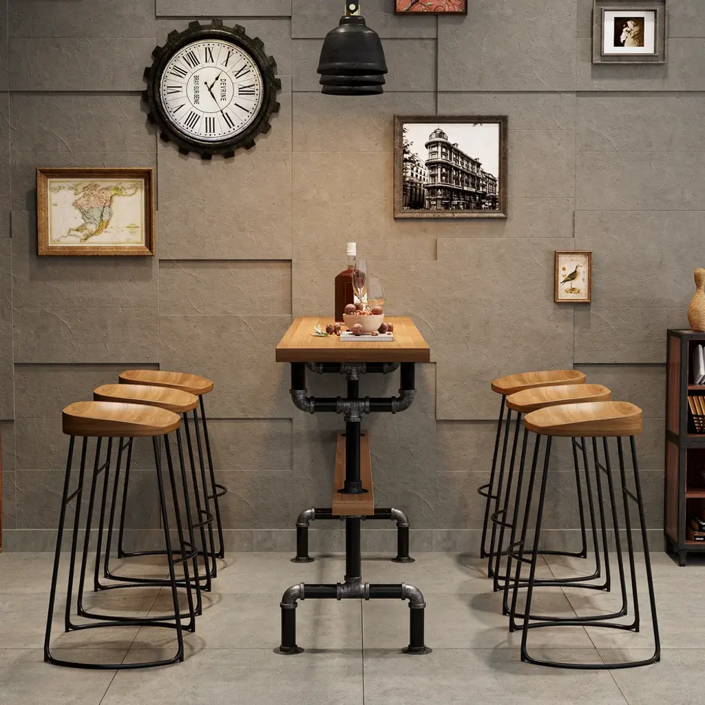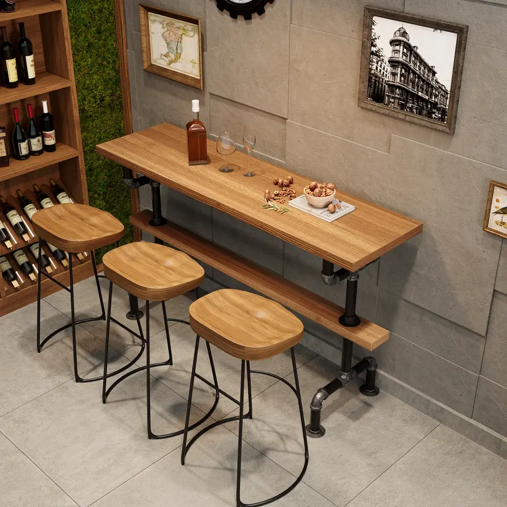 Upgrade your dining or entertaining space with this retro-inspired bar height table. Measuring 70.9", it features a natural plywood top paired with a robust black metal frame, providing a perfect balance of rustic warmth and industrial durability. Perfect for serving as a pub table when entertaining or as the centerpiece to your dining area, its minimalistic design will fit well into a variety of decor styles. Crafted for stability and longevity, this stylish table is as functional as it is stylish, making it stand out in your home.