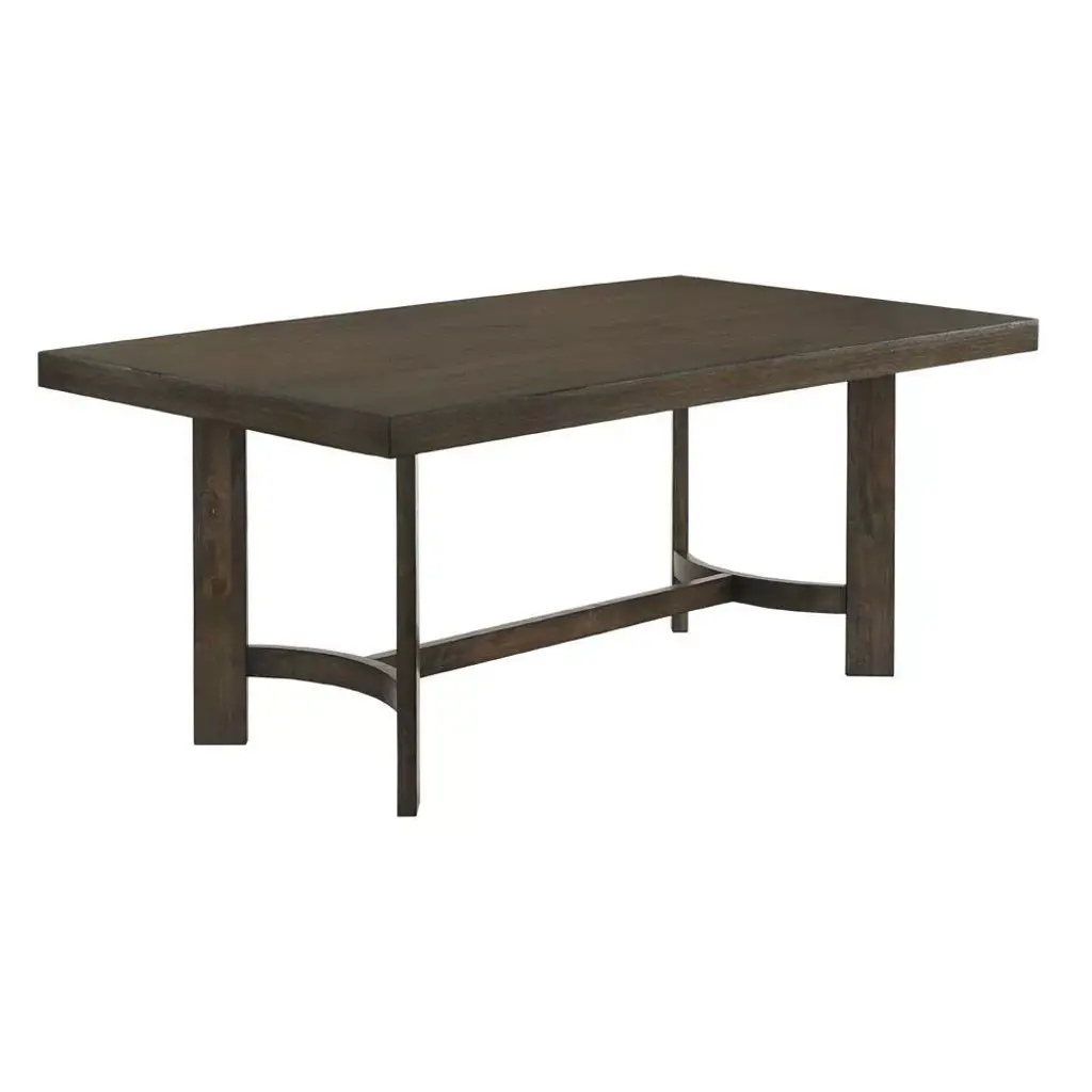 Sit down and dine in style with this must-have Farren dining group. It showcases an effortless yet beautiful trestle base. The table is finished in an espresso color that highlights the beauty of the wood. Try setting it at the center of your dining room, then enjoy every meal from sophisticated dinner parties to casual family breakfasts. The multifunctional dining table can be used for many occasions such as living rooms, kitchen, courtyard parties, outdoor picnics and office and so on.