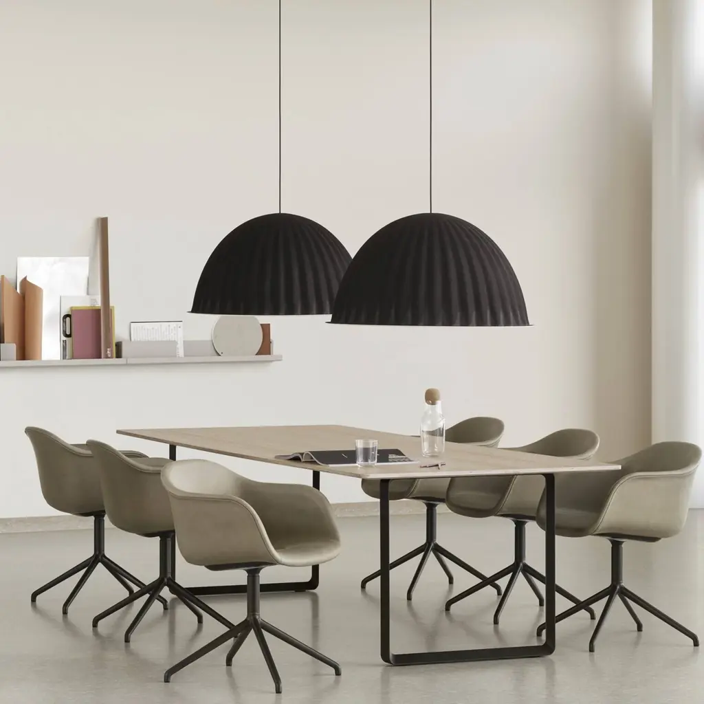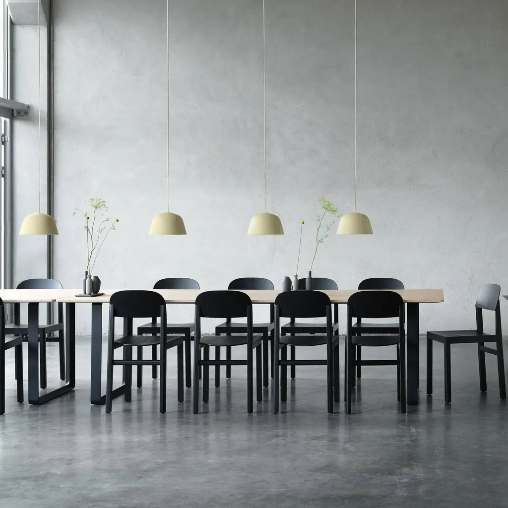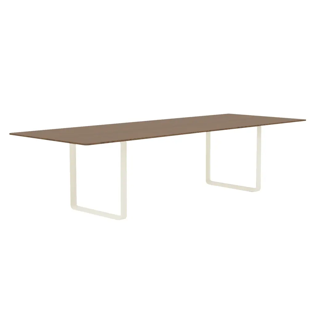 With a magnificent expanse of tabletop in oak, this version of 70/70 is bound to be a forever piece. TAF Studio designers create a striking profile, juxtaposing an angular metal base in cast aluminum to complement the slanted edges of the top. Available in a range of sizes and 3 different metal finishes, Muuto's understated but impressive rectangular table is an ideal match for any dining area, home office, workplace or hospitality setting.