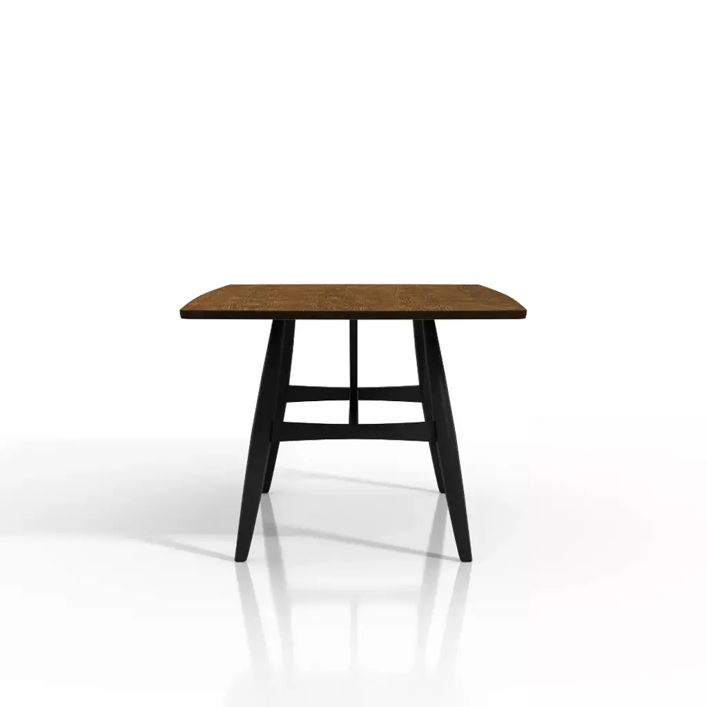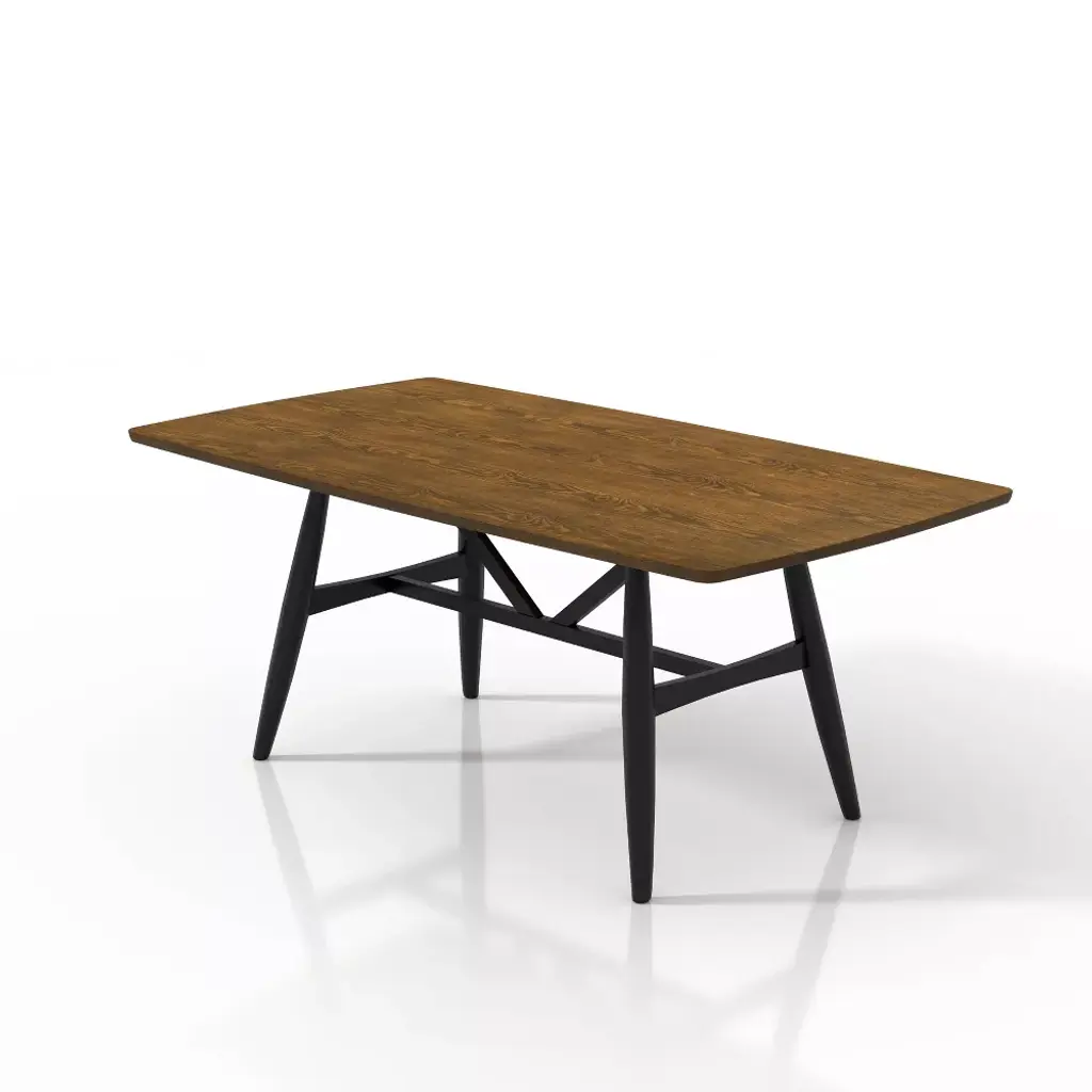 The simplicity of this dining table makes it a versatile piece that can be used in any room in your home. It features a trestle base with support and a round tapered leg design. Made from solid wood and wood veneer, it showcases plank-style top, with beautifully crafted black legs that make the table stand out. The coloration of the wood is complemented by dark bronze-finished metal hardware. Made from rubberwood, durable solid wood sourced from rubber plantations. After the sapwood is tapped for latex, the workable timber is harvested for furniture.
