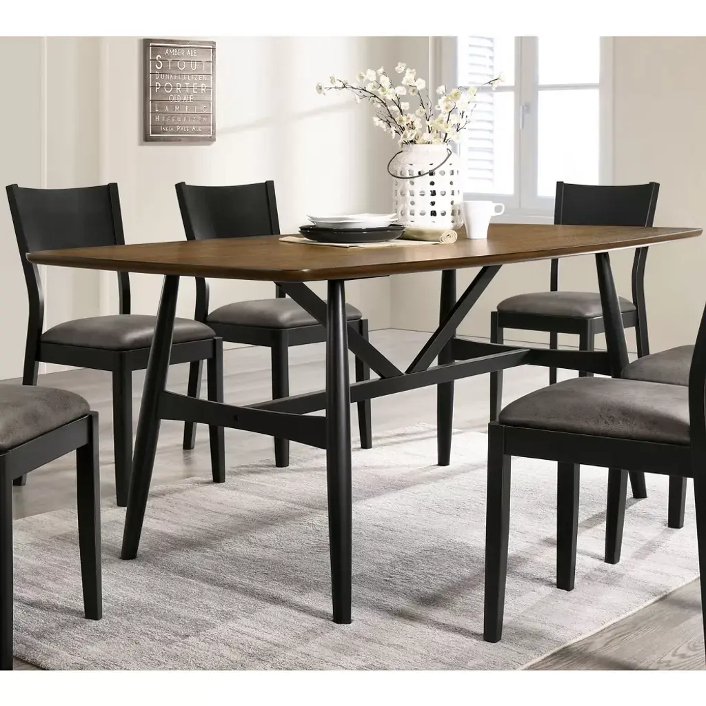 71" Bernst Mid-century Modern Rectangle Dining Table Antique Oak/black - Mibasics: Trestle Base, Seats 6, Wood Veneer