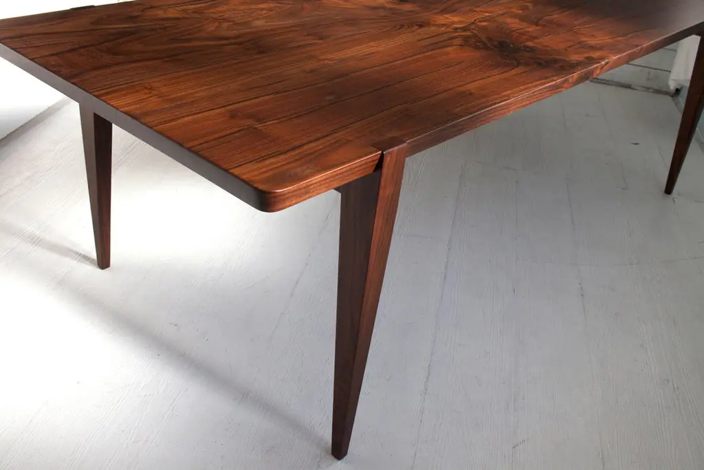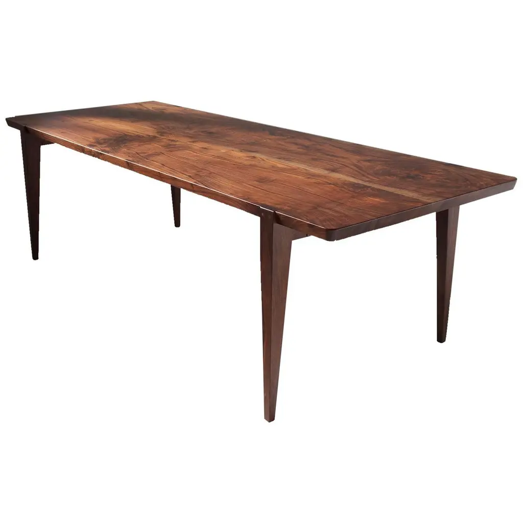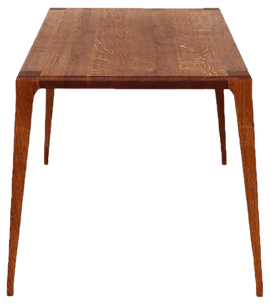 Timeless and elegant, our signature dining table was designed with connection in mind. The clean natural lines of the Oslo dining table are a perfect fit for any style dining room, and an ideal design for customizing. Featuring our signature beveled edges, tapered legs, and notched joinery, this sophisticated yet family-friendly dining table is built for performance, entertaining, dining, work or study. Our table is completed with a beautiful satin finish that is durable, stain-resistant, and enhances the natural grain of the wood. Measures: 84”.Handcrafted with exquisite attention to detail from solid, sustainably harvested or urban salvage American hardwoods, our Oslo dining table is built to last for generations, and is certain to become a treasured piece in the heart of your home. An essential addition to your family tree.
