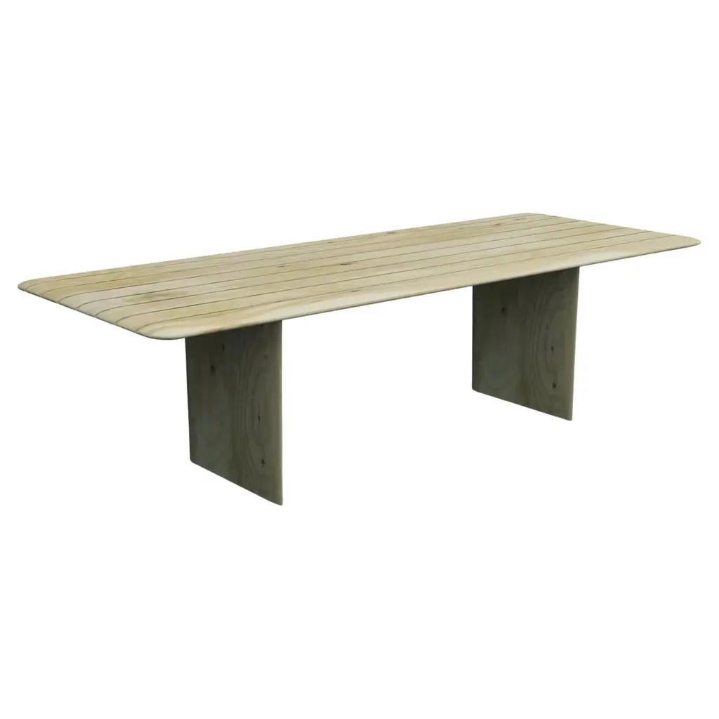 The table is made entirely from solid scented cedar wood, with smooth, rounded sides. Its top and legs have a slender appearance due to the beveled and rounded edges, giving it a graceful, flowing design. The tabletop is composed of individual solid wood planks, assembled without glue. Natural cedar makes this table suitable for outdoor use.This product is crafted from solid cedar wood. Due to the natural properties of solid cedar, the following changes may occur over time, especially when placed outdoors:1. Cracks, splits, and movements in the wood are expected and should be viewed as a normal part of the material’s aging process rather than a defect. If used outdoors, these movements will be more pronounced and frequent. 2. When exposed to outdoor elements, cedar will gradually turn grey due to UV exposure and moisture. This transformation is unavoidable and occurs naturally over time.3. The appearance of mold spots or surface deposits is a natural reaction of cedar, particularly when stored in transport crates for extended periods, or covered for too long. If mold spots appear, follow these maintenance steps: - Use the provided brush to remove surface residue.- Wash the affected area with water.- Allow the piece to dry in a well-ventilated area.4. Cedar wood contains natural resins, which may surface over time, particularly on the top or bottom of the product. To prevent staining, avoid placing cedar furniture directly on carpets or soft surfaces that restrict airflow.General Care Recommendations-Keep cedar products in dry, well-ventilated spaces.-If used outdoors, understand that significant aging effects will occur, including color fading, deeper cracks, and more pronounced wood movement.By purchasing and using this product outdoors, the buyer fully accepts these natural transformations as part of the wood’s aging process. Protective water resistant and mold resistant covers are available for an addition costWe do our best to expedite production and to ship and deliver product within the listed lead time, however current lead times might be longer due to global shipping backlog and delays. These delays are out of our control and cannot be a reason to cancel an order.Our pricing includes all costs for international shipping to the U.S., as well as duties and customs clearance fees. Please be aware that local delivery within the U.S. is not included. We offer white glove, front door, and warehouse delivery options. For shipments outside the U.S., kindly reach out to us for a detailed quote.