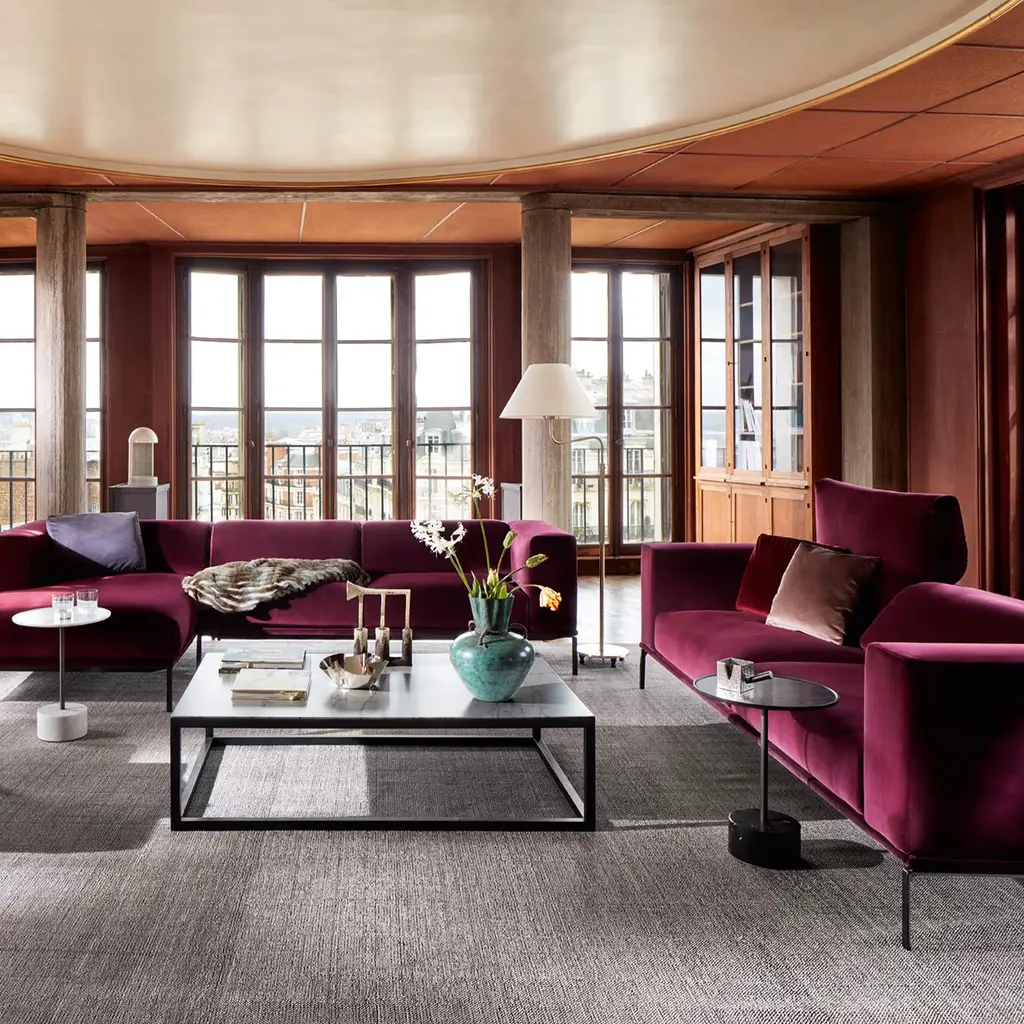 9 - Low table with marble top. Created by Piero Lissoni, these cylindrical and modular tables have been designed for the corporate or hospitality environments. Available in either standard or coffee-table heights, with round tops in various size options, these accessories evince a soft-spoken elegance, and come in a range of materials that chime beautifully with the finishes available on Cassina’s other pieces. The simple lines, appropriate to many settings, are set off by the quality of the materials used. These include solid ashwood and american walnut, and various types of marble. The glass tops, meanwhile, also come in numerous colour options. The dining versions are also available with laminated top.