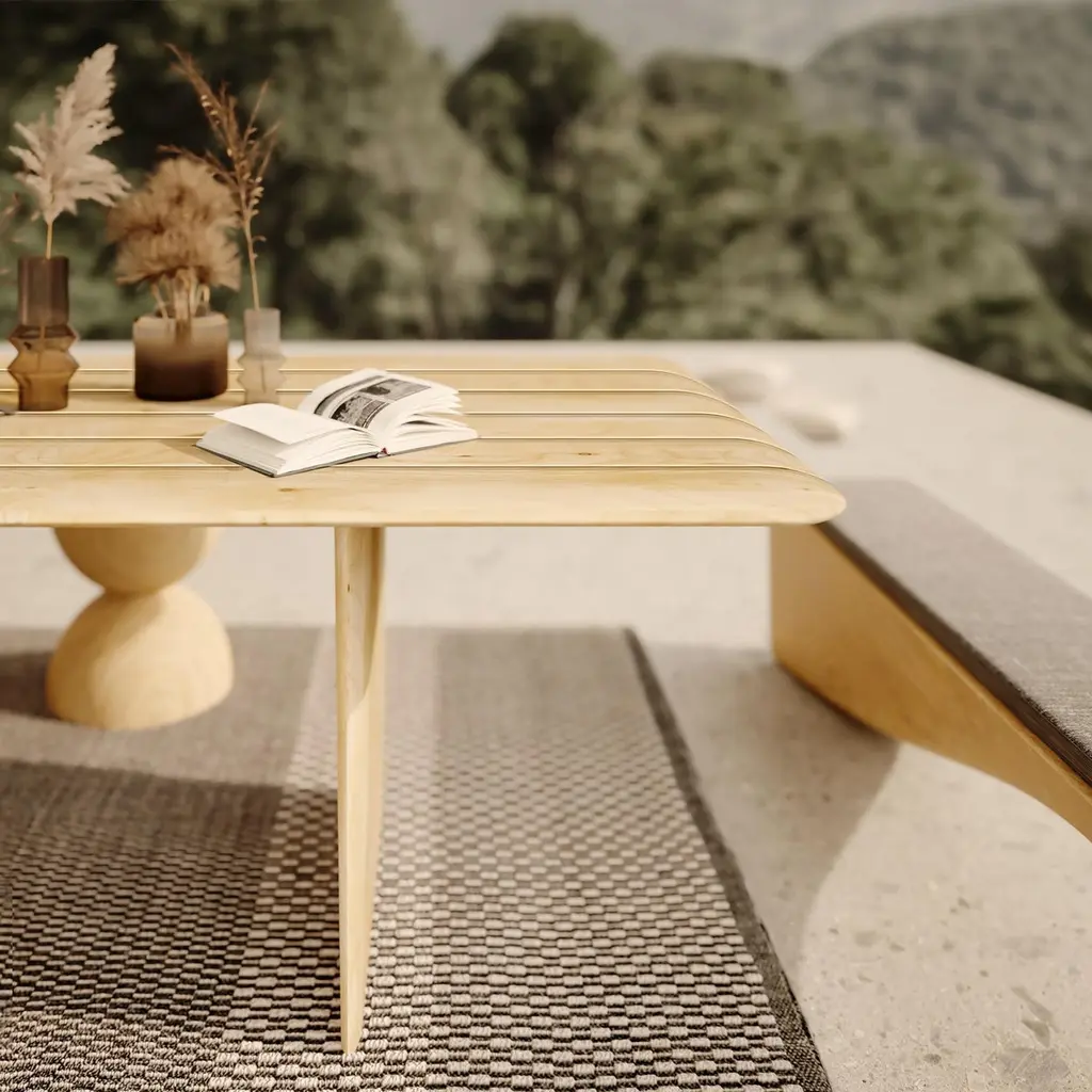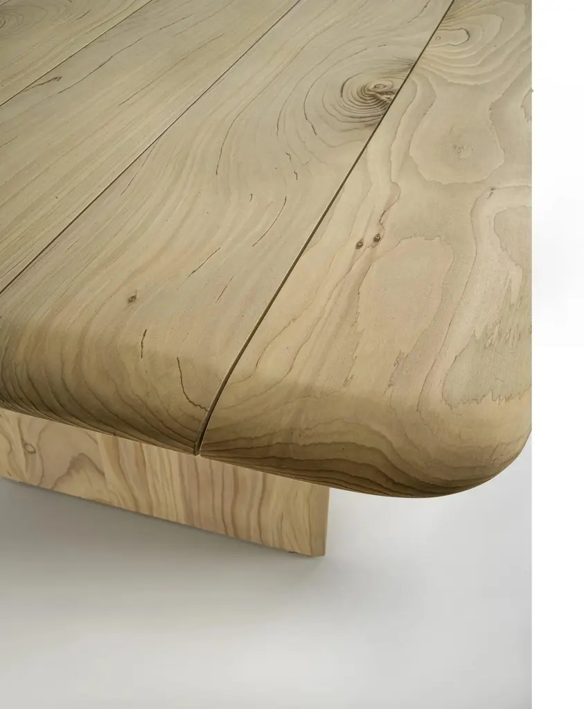 The table is made entirely from solid scented cedar wood, with smooth, rounded sides. Its top and legs have a slender appearance due to the beveled and rounded edges, giving it a graceful, flowing design. The tabletop is composed of individual solid wood planks, assembled without glue. Natural cedar makes this table suitable for outdoor use.This product is crafted from solid cedar wood. Due to the natural properties of solid cedar, the following changes may occur over time, especially when placed outdoors:1. Cracks, splits, and movements in the wood are expected and should be viewed as a normal part of the material’s aging process rather than a defect. If used outdoors, these movements will be more pronounced and frequent. 2. When exposed to outdoor elements, cedar will gradually turn grey due to UV exposure and moisture. This transformation is unavoidable and occurs naturally over time.3. The appearance of mold spots or surface deposits is a natural reaction of cedar, particularly when stored in transport crates for extended periods, or covered for too long. If mold spots appear, follow these maintenance steps: - Use the provided brush to remove surface residue.- Wash the affected area with water.- Allow the piece to dry in a well-ventilated area.4. Cedar wood contains natural resins, which may surface over time, particularly on the top or bottom of the product. To prevent staining, avoid placing cedar furniture directly on carpets or soft surfaces that restrict airflow.General Care Recommendations-Keep cedar products in dry, well-ventilated spaces.-If used outdoors, understand that significant aging effects will occur, including color fading, deeper cracks, and more pronounced wood movement.By purchasing and using this product outdoors, the buyer fully accepts these natural transformations as part of the wood’s aging process.Protective water resistant and mold resistant covers are available for an addition costWe do our best to expedite production and to ship and deliver product within the listed lead time, however current lead times might be longer due to global shipping backlog and delays. These delays are out of our control and cannot be a reason to cancel an order.Our pricing includes all costs for international shipping to the U.S., as well as duties and customs clearance fees. Please be aware that local delivery within the U.S. is not included. We offer white glove, front door, and warehouse delivery options. For shipments outside the U.S., kindly reach out to us for a detailed quote.