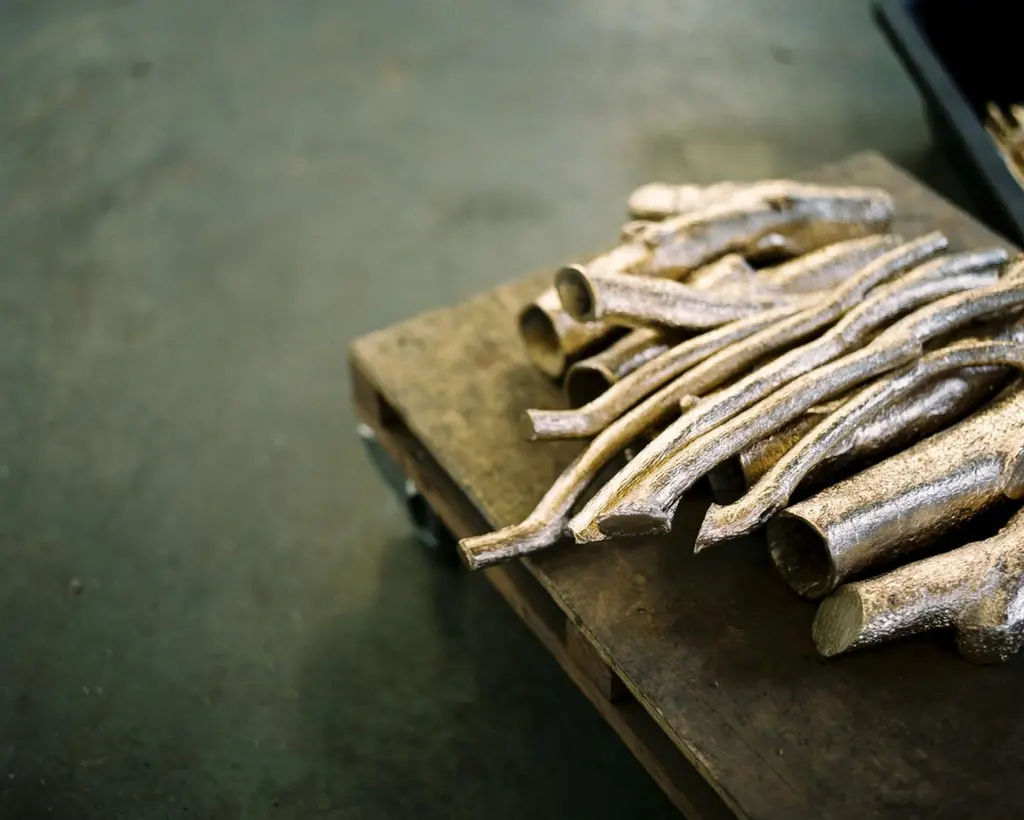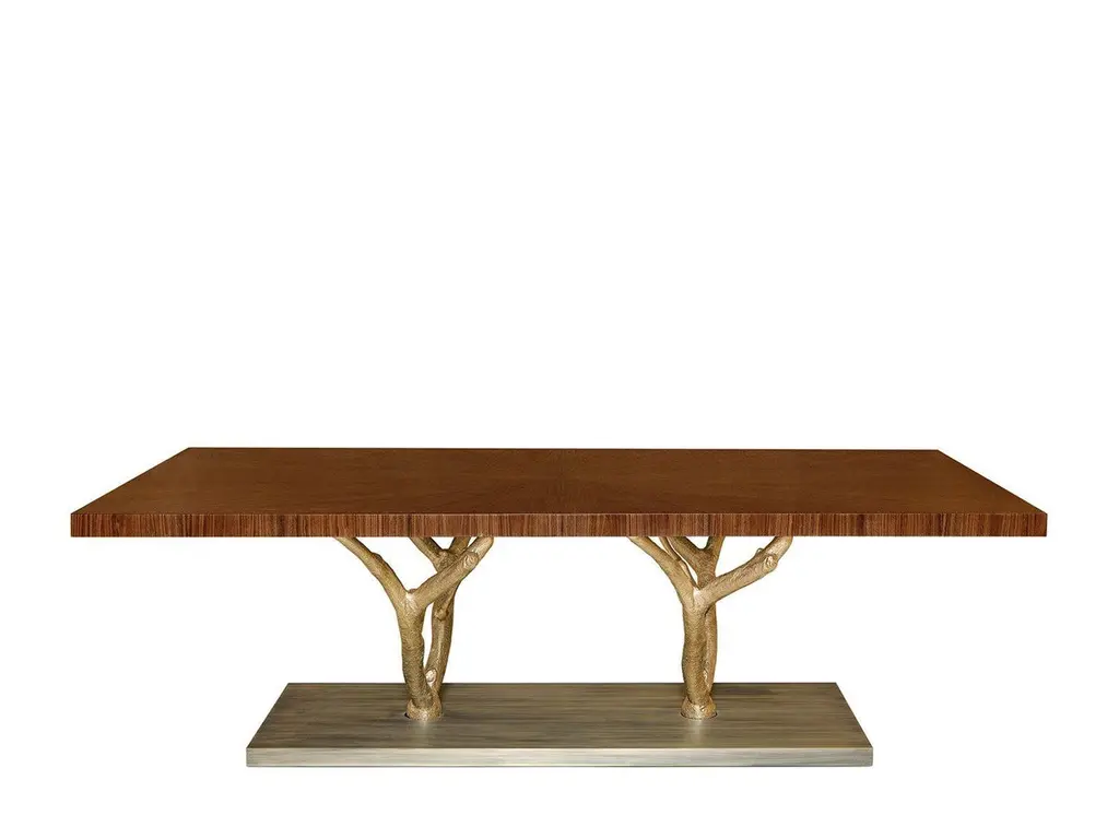 Nature’s forms, materials and textures are immortalized in striking fashion in this piece. The structure is molded in brass casting from magnolia tree branches, providing function to its natural form. The metal base and wood marquetry top deepens the piece’s connection with earthy materials.Priced here for American walnut tabletop and brass base with antique brass base plate. Offered in other finishes, contact us for pricing: Structure: Cast brass in Brass, Antique Brass, Silver, Antique Silver, Copper or Antique Copper.Base: Brass, Nickel or Copper in polished, brushed or antique finishing.Size can be customized to fit your space perfectly.We do our best to expedite production and to ship and deliver product within the listed lead time, however current lead times might be longer due to global shipping backlog and delays. These delays are out of our control and cannot be a reason to cancel an order.