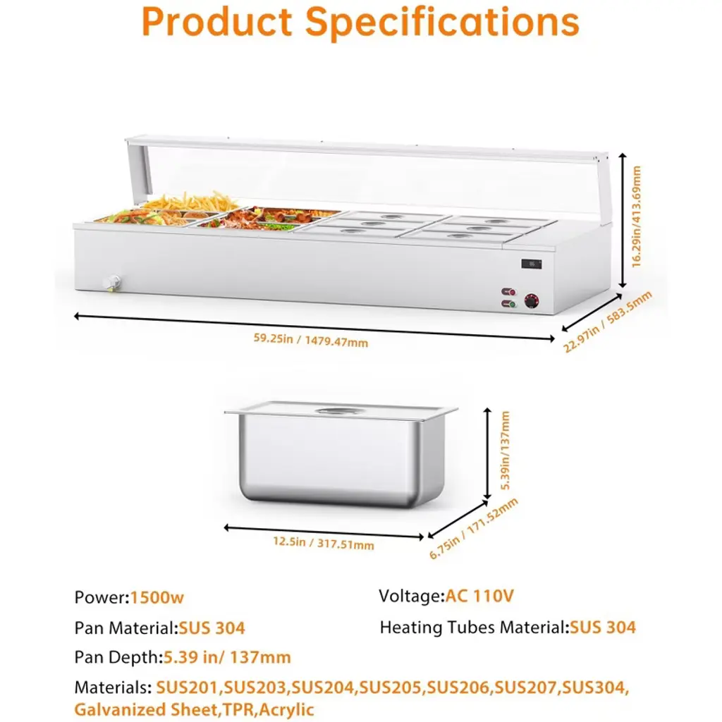 this countertop steam table features eight 8QT stainless steel pans, ideal for buffets, restaurants, and catering events. Elevate your food service experience with our Electric Commercial Food Warmer, designed to meet the demands of any busy dining environment!