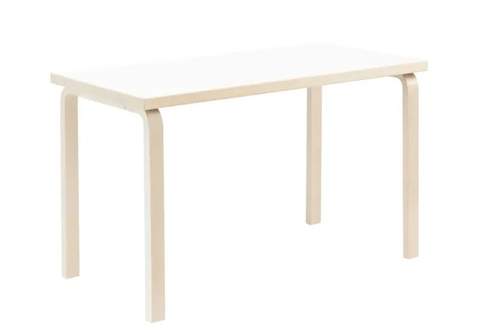 The Aalto Table rectangular conveys a relaxed familiarity that resists categorisation. Whether used for dining, working, or playing, the table retains its character while offering endless possibilities. In accordance with Alvar Aalto’s conception of versatile furniture, it moves naturally between public and private spheres. The Finnish birch from which Aalto tables are made boasts a natural beauty and radiates warmth; environmentally friendly, it will age gracefully over time. As with all Aalto products, the Aalto Table continues to be fabricated semi-industrially, according to strict criteria and with a high proportion of handcraftsmanship.Available in multiple standard versions. Four legs and top edge-band in solid birch: clear lacquerm, black lacquer, white lacquerTop surface: birch clear lacquer, HPL IKI white, linoleum black