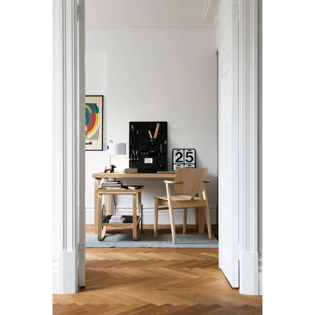Artek’s table 80A is Alvar Aalto's timeless design from 1935. The main material of the rectangular dining table is solid birch, and the tabletop is coated with easy-care laminate. Artek tables are based on different combinations of Alvar Aalto’s L-legs and tabletops. Aalto introduced the bent L-leg for the first time in 1933, and it became a standard component in his furniture designs. Judging his importance as a designer and architect, Aalto considered the development of the L-leg as his greatest achievement – he even called the L-leg "the little sister of the architectonic column". The development of the L-leg was revolutionary because it solved the problem of attaching legs directly to the tabletop in a completely new way – the leg could be fastened with screws directly to the tabletop, and the result was a simple but very solid structure.