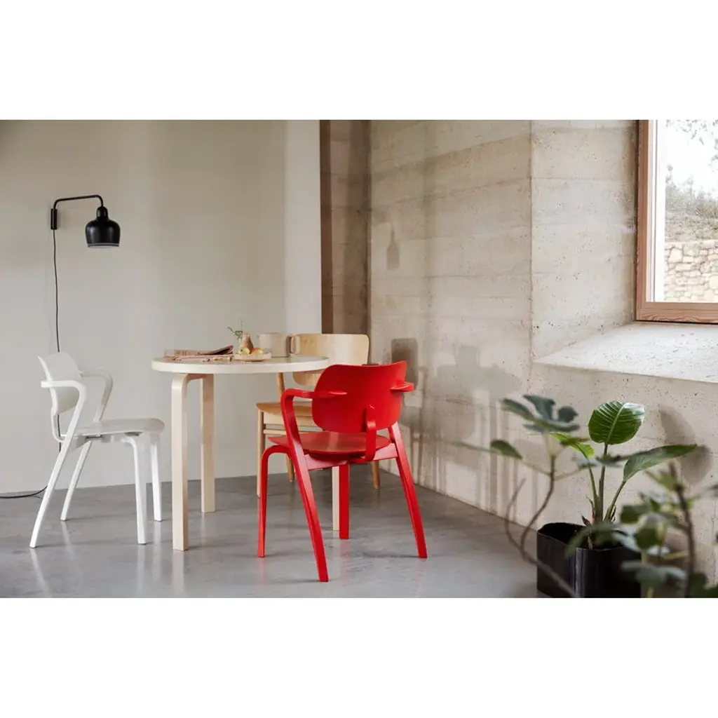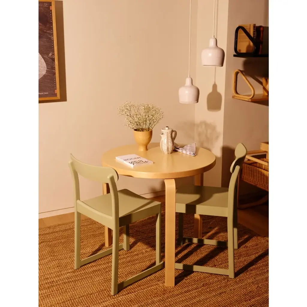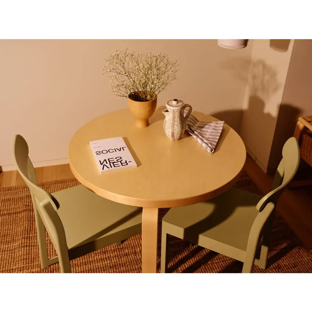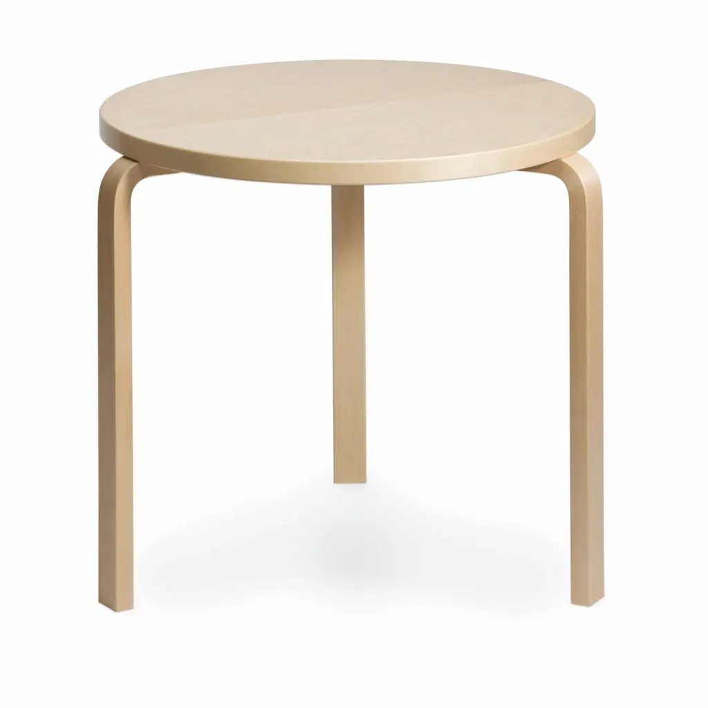 Artek's table 90B is Alvar Aalto's timeless design from 1935. The main material of the round, three-legged dining table is solid birch. Artek tables are based on different combinations of Alvar Aalto’s L-legs and tabletops. Aalto introduced the bent L-leg for the first time in 1933, and it became a standard component in his furniture designs. Judging his importance as a designer and architect, Aalto considered the development of the L-leg as his greatest achievement – he even called the L-leg "the little sister of the architectonic column". The development of the L-leg was revolutionary because it solved the problem of attaching legs directly to the tabletop in a completely new way – the leg could be fastened with screws directly to the tabletop, and the result was a simple but very solid structure.