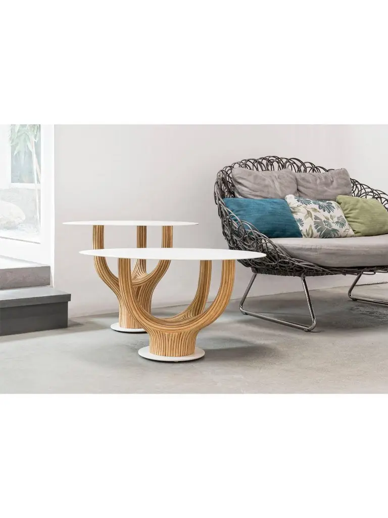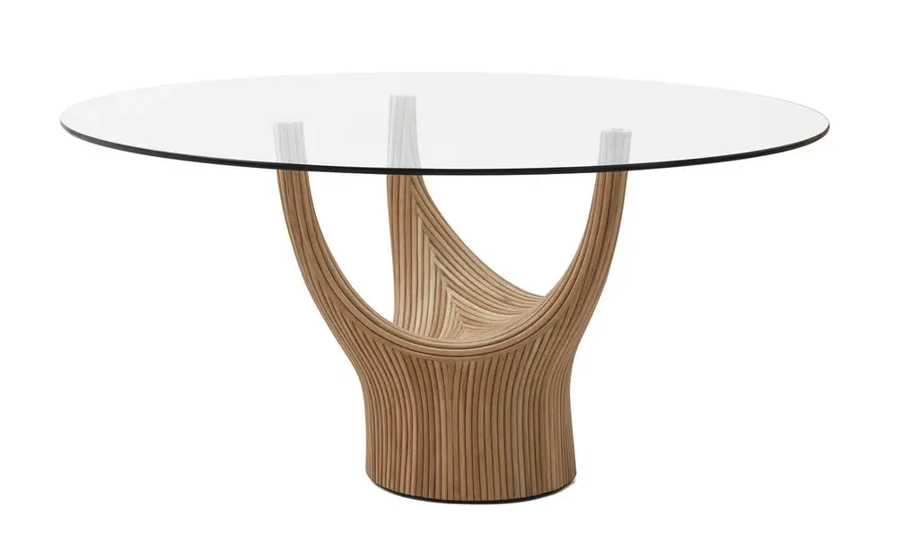 Dining table by Kenneth CobonpueMaterials: Rattan, steel, glass. Whitewash top, natural base.Dimensions: 150 x 58.5 x H 74 cmInspired by the ancient baobab, the table collection is made of rattan poles fastened together to create sculptural and fluid contours. The natural and raw assemblage of rattan is a striking contrast to the more streamlined and minimalist tabletop. Also available in other sizes.Designer's biographyKenneth Cobonpue is a multi-awarded furniture designer and manufacturer from Cebu, Philippines. His passage to design began in 1987, studying Industrial Design at the Pratt Institute in New York. While completing his studies, he apprenticed for a leather and wood workshop near Florence, Italy. He went on to study Furniture Marketing and Production at the Export-Akademie Baden-Württemberg in Reutlingen, Germany, under a private and state scholarship program, and subsequently worked in Bielefeld and Munich.Kenneth returned home to Cebu in 1996 to manage Interior Crafts of the Islands, Inc., a furniture design and manufacturing company founded by his mother Betty Cobonpue in 1972. Discovering that modern design could have a new face using natural fibers and materials, Kenneth created pieces of functional art, offering an alternative to the Western definition of modern design. Today, the Kennethcobonpue brand has become known globally for its unique designs and extensive roster of clientele, including Hollywood celebrities and members of royalty.With his masterful way of integrating nature, traditional craft and innovative technologies, designer and creative director Kenneth Cobonpue has earned international awards and recognition for his creative, organic, and expressive pieces. Working closely with some of the world’s leading designers, from household names to emerging talents, Kenneth has been pushing the envelope for design in the Philippines and sharing his vision to a global audience. Awards to his credit include five Japan Good Design Awards, the grand prize at Singapore International Design Competition, the Design for Asia Award of Hong Kong, the American Society of Interior Design Top Pick selection and the French Coup de Coeur award. Several of his designs were selected for several editions of the International Design Yearbook published in London and New York. Phaidon’s book entitled “& FORK” underscores Kenneth’s position as a leader of a new movement incorporating new technologies with crafts. In 2007, TIME magazine called him “rattan’s first virtuoso”. Kenneth was named the Designer of the Year in the first edition of Maison et Objet Asia held in March 2014 in Singapore.Kenneth reveals new work each year in design shows from Milan to New York, and he speaks regularly about Southeast Asian design all-over the world. He has also appeared in European television and in countless international magazines and newspapers around the world. Various Cobonpue designs have also appeared in full-length feature films and television, such as Oceans 13 and CSI.