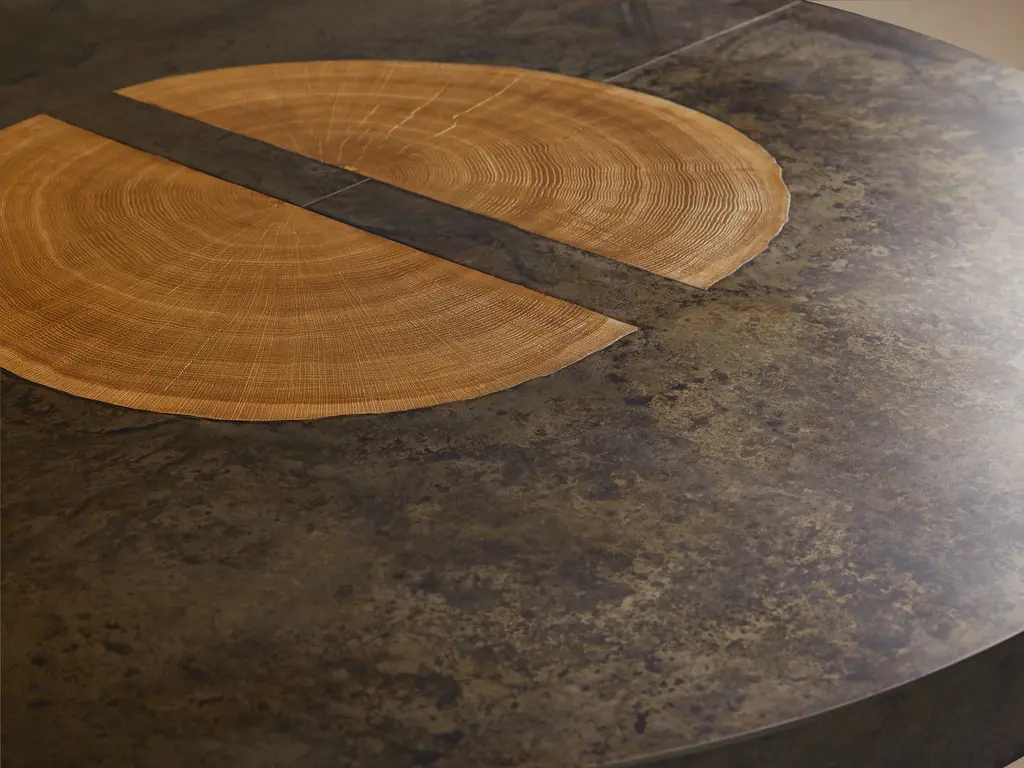 Made from panels of steel left out in the elements to age, Acacius is one of our signature collections handcrafted by a family of imaginative artists in Mexico. After developing a patina of stains and speckles, each panel is molded around the organic silhouette of reclaimed yukas, creating a finished piece as unique as the trees themselves.