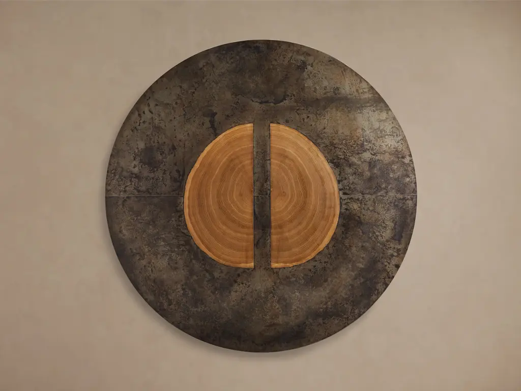 Made from panels of steel left out in the elements to age, Acacius is one of our signature collections handcrafted by a family of imaginative artists in Mexico. After developing a patina of stains and speckles, each panel is molded around the organic silhouette of reclaimed yukas, creating a finished piece as unique as the trees themselves.