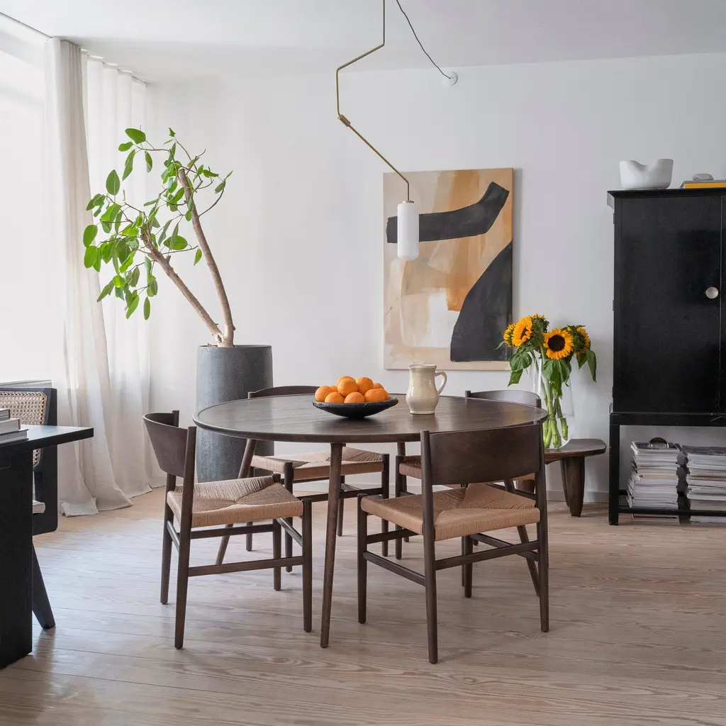 Mater’s Accent collection includes this capacious wood dining table in a choice of sizes. Following a sculptural and handcrafted aesthetic, Denmark-based design studio Space Copenhagen borrows the tapering lines from its similar High Stool. Crafted in sustainably sourced solid oak in a choice of lacquer finishes, the oval-topped table puts a graceful spin on modernism.