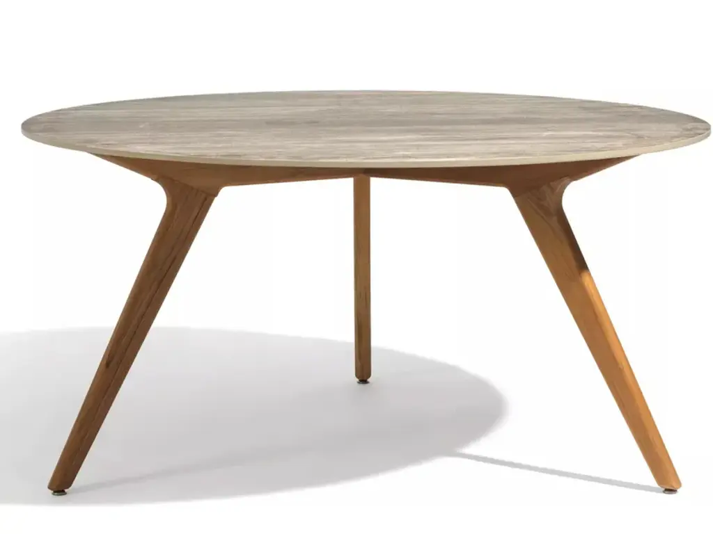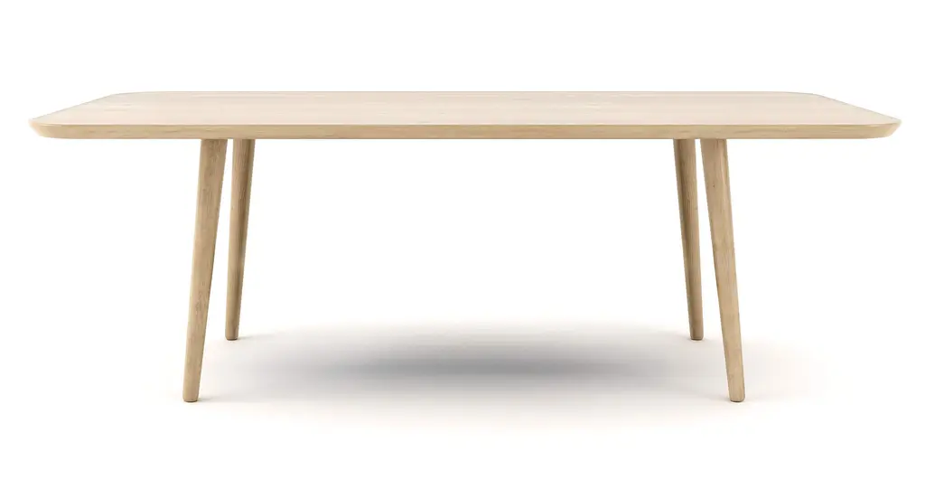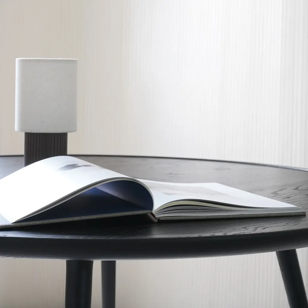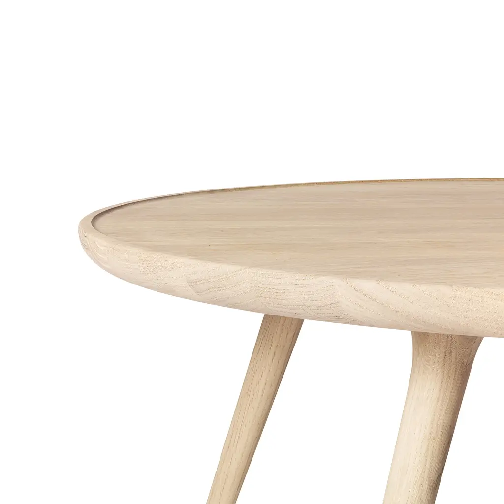 Space Copenhagen pares the dining table down to its essentials—plane, edge, leg—then gives each element just enough detail to feel sculptural. The Accent table’s solid-oak top thins toward the rim so light skims its surface like a sheet of ice, while soft-tapered legs meet in a low brace that echoes traditional Danish joinery without the fuss. Cut from FSC-certified European oak and finished in either matte-lacquer or black-stain, the wood keeps its natural grain on show and tones down the shine for everyday use. Pull up four chairs to the 55-inch round for easy passing and eye contact, or choose the smaller 35-inch version when square footage (or office paperwork) is tight. Breakfast, sketch session, late-night emails—whatever lands on the Accent table gets a calm, quietly crafted stage.