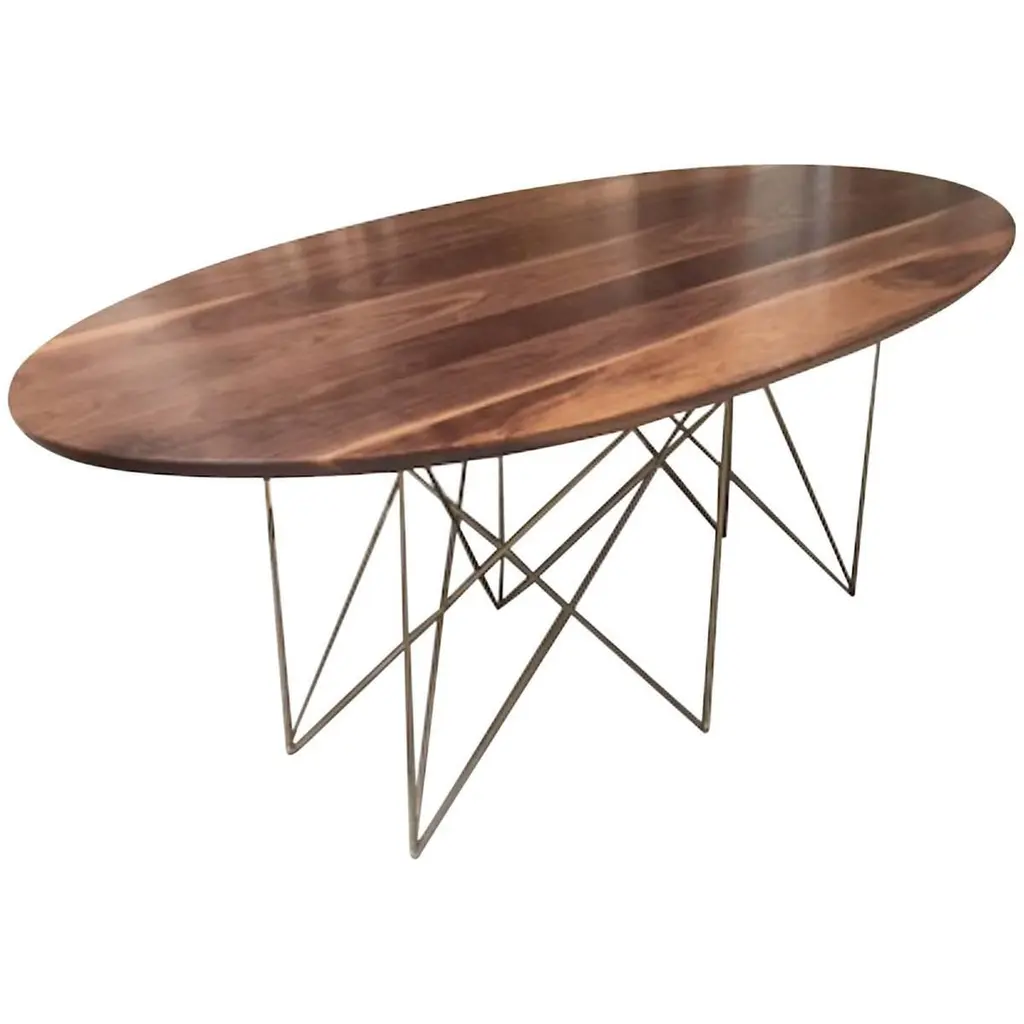 Acco table is available with a wooden or ceramic top. The wooden base is offered here in black ash, however, available for custom orders in natural oak or Canaletto walnut. Here you are shown the Acco large dining table in black ash base Finish and size 260 x 120 x 75 H. The Large Acco table is available for custom orders in a small and medium dinning table size, as well as a small and medium breakfast tables. If you are interested in the customizable options. Florian Schmid, born 1984 in Germany graduated in 2011 from the University of Munich, faculty of Applied Sciences and subsequently opened his own studio. He designs and designs furniture, textiles and consumer goods. Often the objects have an iconic and figurative impression. The design process is guided by a strong playful and experimental sense, always keeping in mind the nature of the materials themselves and their character. With his design he wants to provoke emotions in consumers and improve the surrounding environment. His works have been exhibited at the London's Design Festival, during the BODW in Hong Kong, at the D3 Contest Design Talents in Cologne and at the Salone del Mobile in Milan. He has already received several awards, such as the IF Award 2012; has been named ""newcomer"" in the German Design Award of 2013 and his works have been acquired by various design collections. Recently, in the spring of 2014, he was awarded the ""A & W DESIGNTALENT 2013"" by the Architektur & Wohnen newspaper. Additional information:Dimensions: Table top height: 4cm, overall table height: 75 cm, width of table: 260 cm, depth of table: 120 cm.Top finishes available in: vintage oak, canaletto walnut, flamed oak, black ash, ash, ceramic statuario bianco, ceramic thundernight, ceramic étoile gris, ceramic emperador.Base finishes: Canaletto walnut, flamed oak, ash, black ash.Available in different sizes: 200 x 120 x 75 H, 240 x 120 x 75 H, Ø 140 x 75 h, Ø 155 x 75 H. Prices may vary. VAT not included.