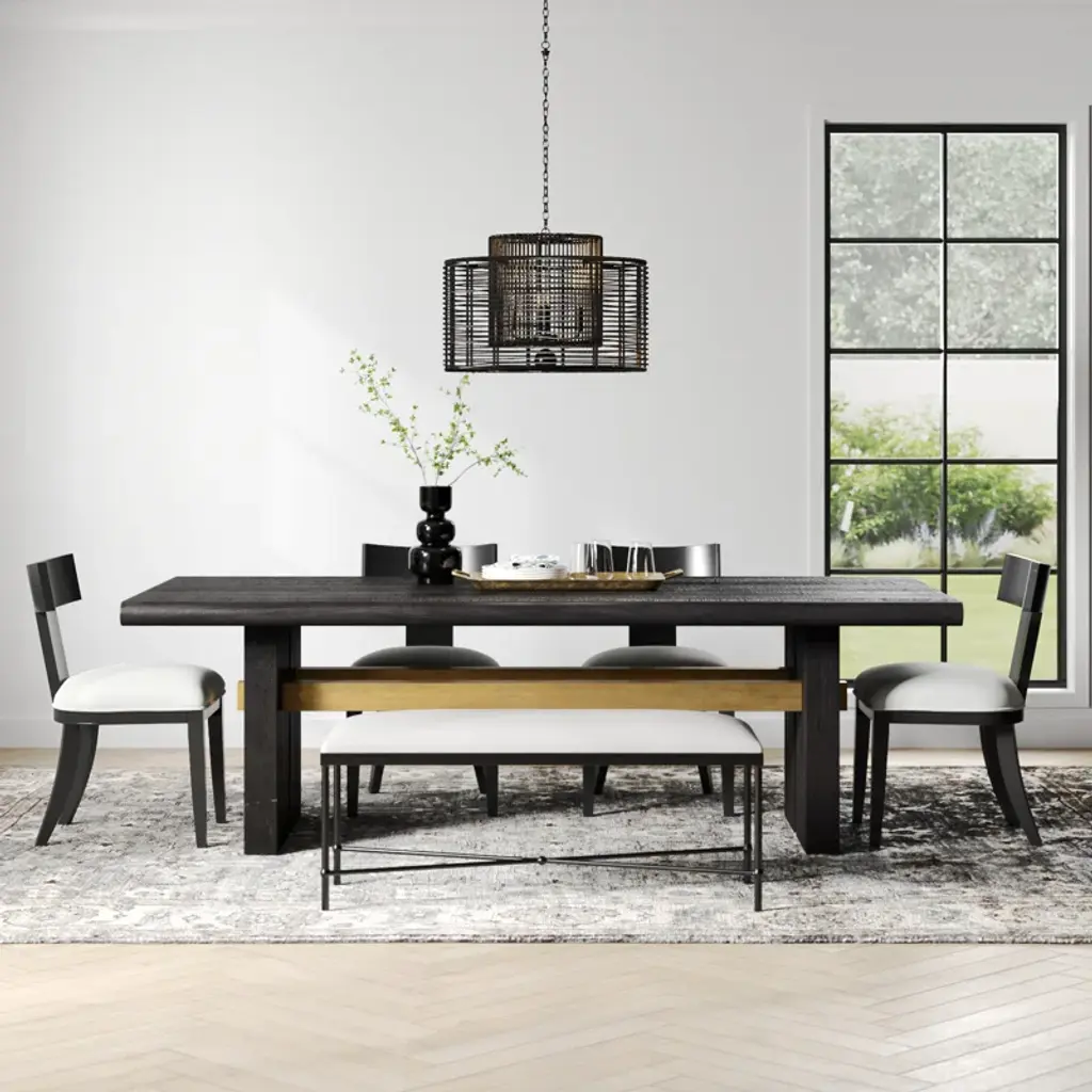 Gather 'round. Our rectangular dining table, crafted from solid pine wood, features a trestle base for an effortlessly elegant look. Designed to accommodate up to eight guests, this piece offers plenty of space for family feasts and dinner parties alike. The natural wood grain adds warmth and character to your dining room, creating a welcoming atmosphere for memorable meals. So, gather the gang and break bread in style.