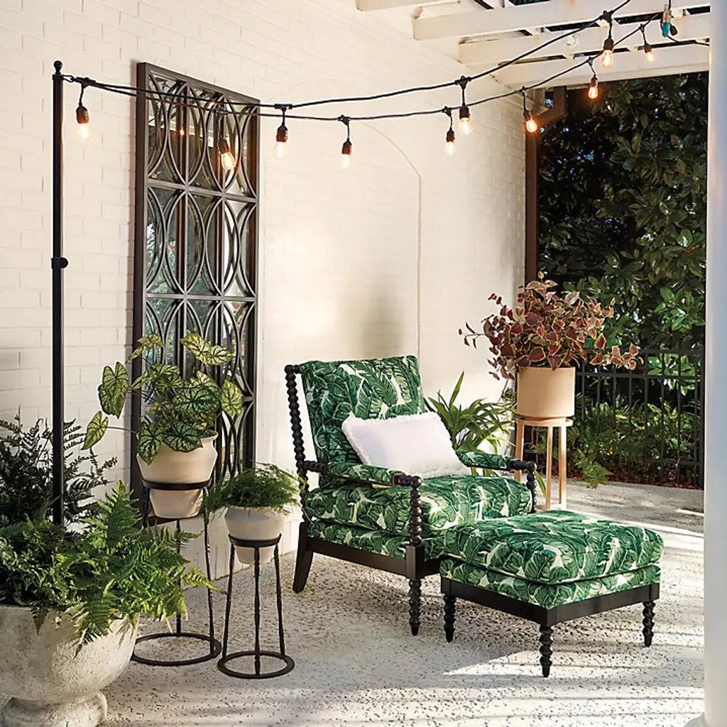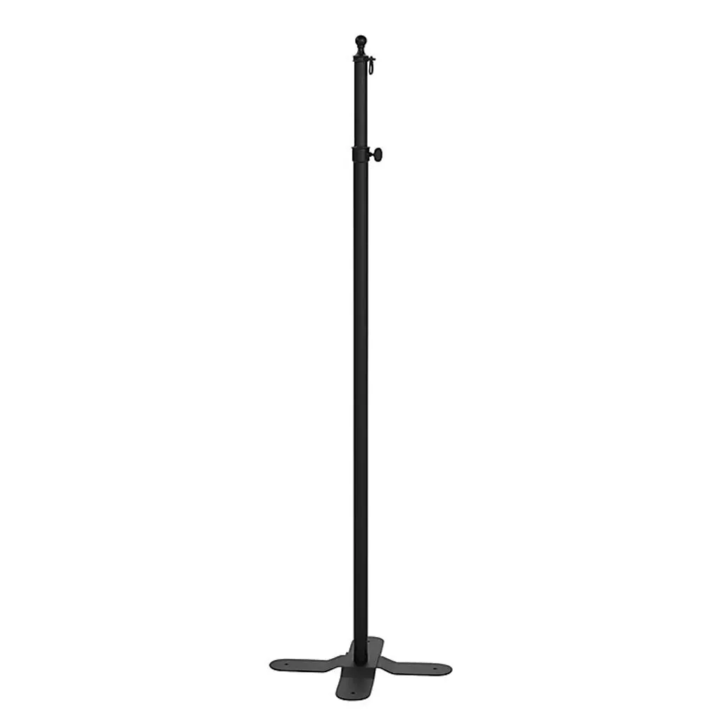 Our Adjustable String Light Stand makes it easy to add sparkle to your summer parties, patio, and outdoor dining tables. The sturdy, matte black metal pole adjusts from 46 inches to 86 inches in height and locks into position with a knobbed screw, allowing you to set your lights to fit the location. String lights run through a carabiner attached just below the nicely turned ball finial. The heavily weighted "X" stand can be staked into the ground or placed in a large planter to bring inviting light to any spot in your outdoor garden decor. Adjustable String Light Stand features: