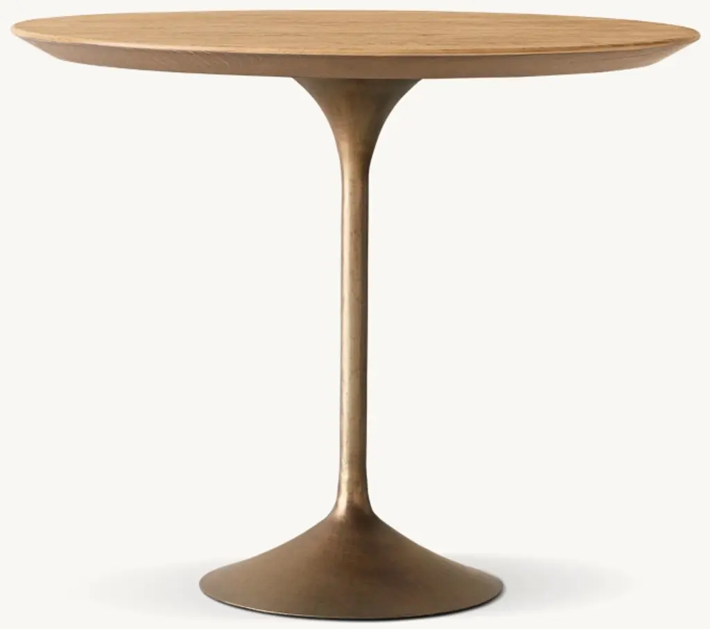 Paying homage to the sweeping lines of midcentury furnishings, our table is a study in simplicity. Defined by its balanced proportions and arching, sculptural curves, our interpretation pairs a cast steel pedestal base with a beveled-edge oak or walnut top. ALSO AVAILABLE IN STONESHOP THE ENTIRE COLLECTION