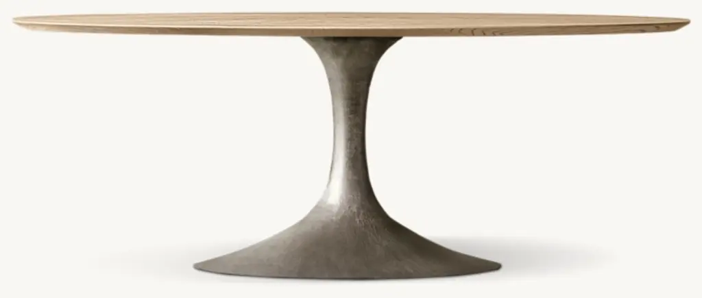 Paying homage to the sweeping lines of midcentury furnishings, our table is a study in simplicity. Defined by its balanced proportions and arching, sculptural curves, our interpretation pairs a cast steel pedestal base with a beveled-edge oak or walnut top.ALSO AVAILABLE IN STONESHOP THE ENTIRE COLLECTION