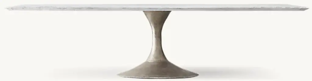 Paying homage to the sweeping lines of midcentury furnishings, our table is a study in simplicity. Defined by its balanced proportions and arching, sculptural curves, our interpretation pairs a cast steel pedestal base with a beveled-edge top, handcrafted of Italian travertine or marble. ALSO AVAILABLE IN WOODSHOP THE ENTIRE COLLECTION