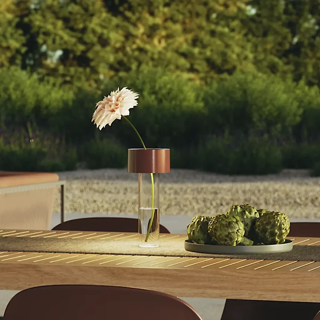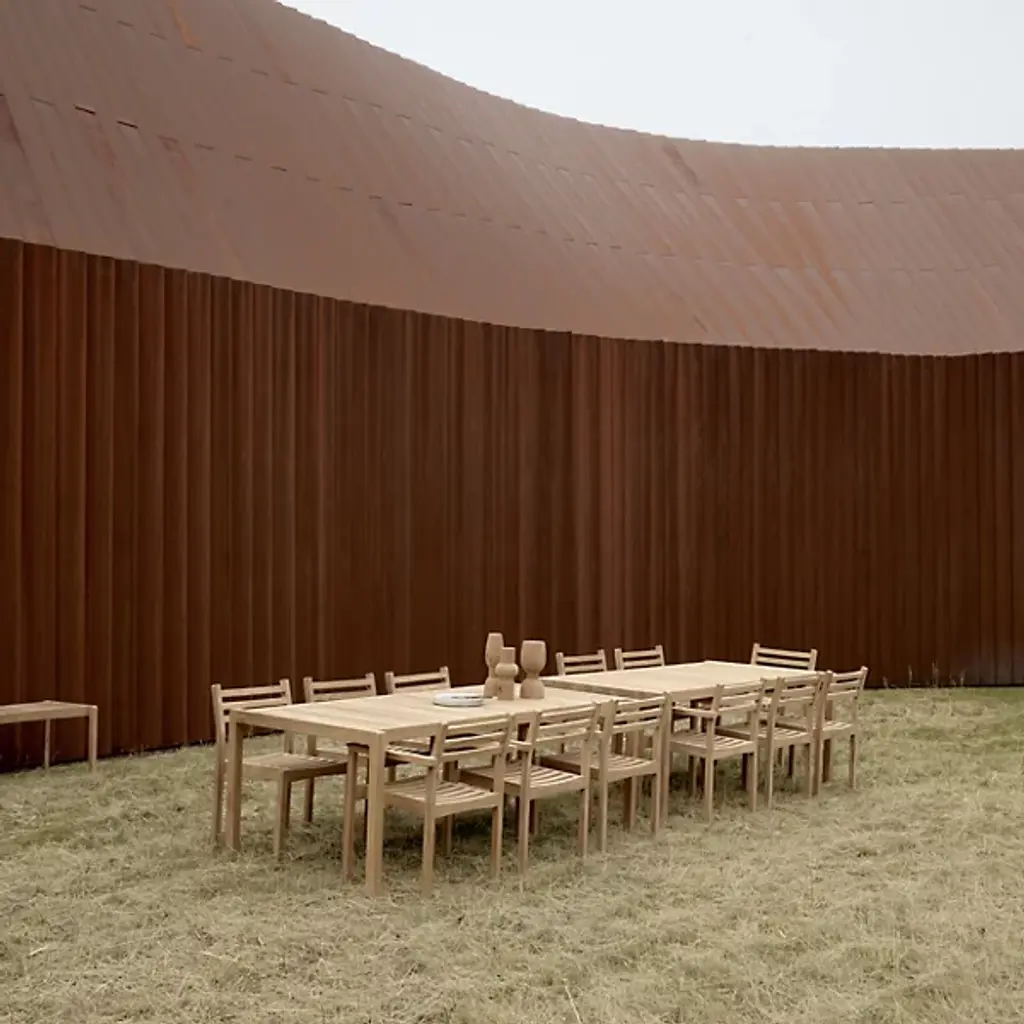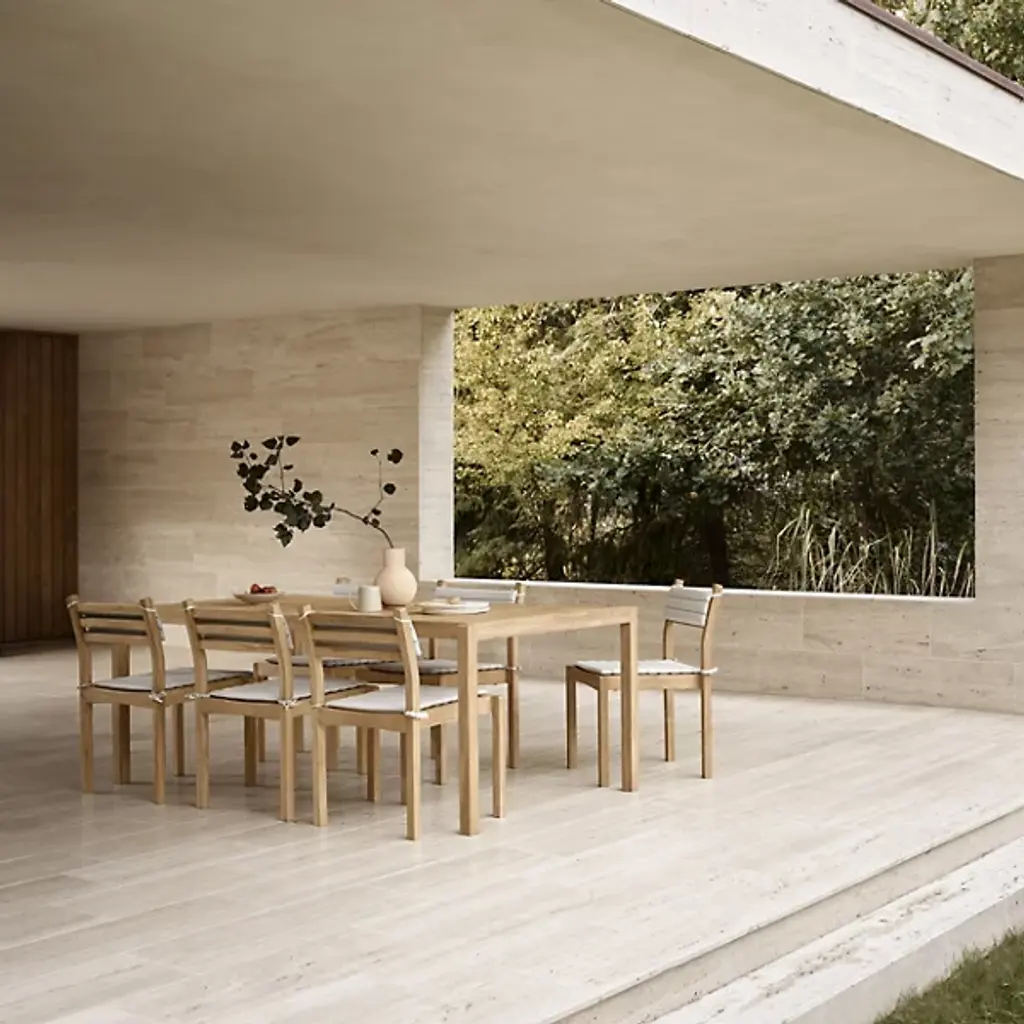 Enjoy open-air dining with the comfortable and reliable teak construction of the AH901 Outdoor Dining Table from Carl Hansen. Alfred Homann designs the piece with a holistic approach, putting simplicity, clarity, and logic first. The dining table features a strict aesthetic representative of Danish design. Here, FSC-certified teak wood reveals its distinct colors and grain with slim linear segments. The teak’s dense properties make it strong against a range of weather conditions. Rainfall over the piece’s tabletop filters through thanks to its slatted construction. This wide, minimal top helps creates an inviting dining experience.