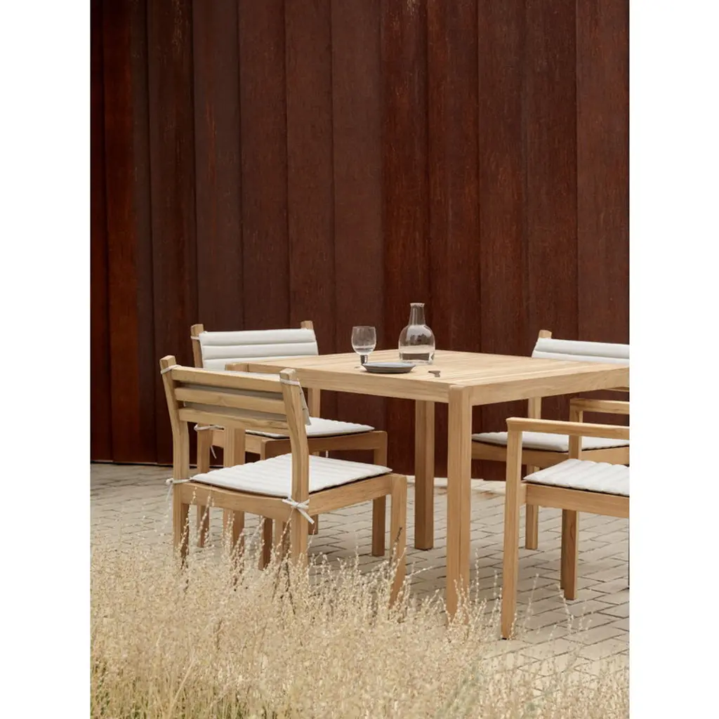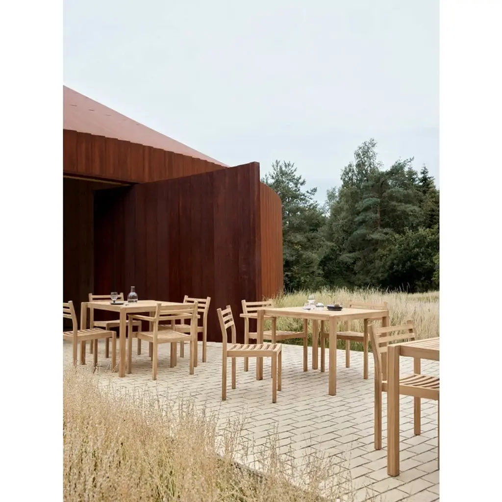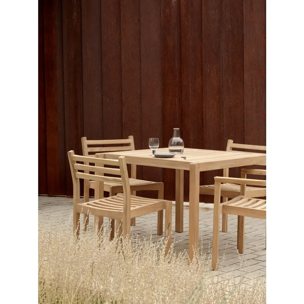 The AH Outdoor collection by Carl Hansen & Søn adds a dose of timeless Danish design to your outdoor space, whether it be a spacious patio or a compact urban balcony. Designed by architect Alfred Homann in 2022, the elegantly minimalist collection consists of a variety of furniture suitable for any occasion from hosting a large garden party to relaxing in the company of just yourself and perhaps a good book. Characterized by a simple and functional design language, model AH902 is a square dining table ideal for four people. The clean lines and subtle rounded details make the table the perfect addition to a variety of environments from a lush traditional garden to a modern, more ascetic outdoor space. The table is stackable, making it also ideal for cafés and restaurants as it is easy to store away for the winter. Just like all furniture in the AH Outdoor collection, the table is made of certified teak wood. The durable material ages beautifully, turning from a warm brown to a dignified silvery gray. If you wish to keep the original color, be sure to oil the furniture before the first use and regularly thereafter.