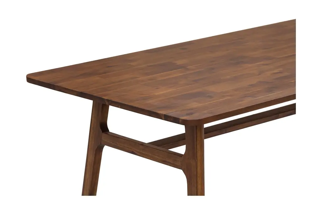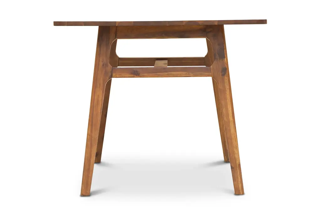 The Aiken Collection is a devilishly-handsome set of contemporary furniture with a not-so-subtle nod toward Mid-Century Modern aesthetics. This solid Acacia wood modern furniture collection will warm up any space with its gorgeous Estelle brown finish. It's an undeniably sharp collection that still feels approachable and inviting. The Aiken Collection also wisely allows the inherent beauty of the solid Acacia wood to come through in the design. The hand-crafted aspect of the Aiken Collection mans that no two pieces are alike. Knots, grain, and other manufacturing elements are clearly visible in the finish. There’re no tricks here - the Aiken is a truly solid, top-of-the-line collection. The Aiken Dining Table is a wonderful small space dining table that seats 4 comfortably and up to 6 if it's a real party. This Acacia wood table solid wood from its legs all the way up to its surface. The uniform finish gives the Aiken Dining Table a clean look. There’s no distracting metal work or gold accents to take away from its natural beauty. The wood does all the talking. You'll definitely feel an Aiken in your heart if you pass up an opportunity to buy a piece from the Aiken Collection.