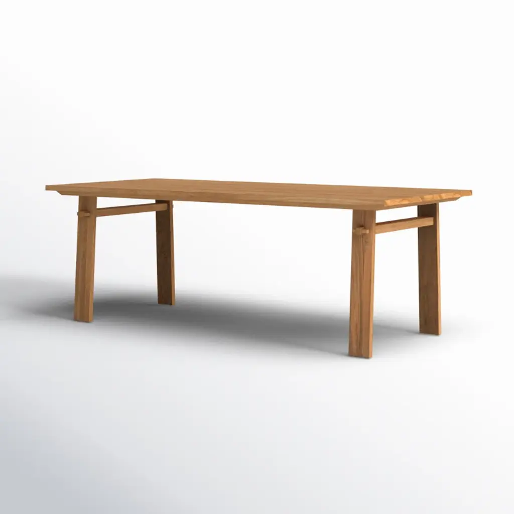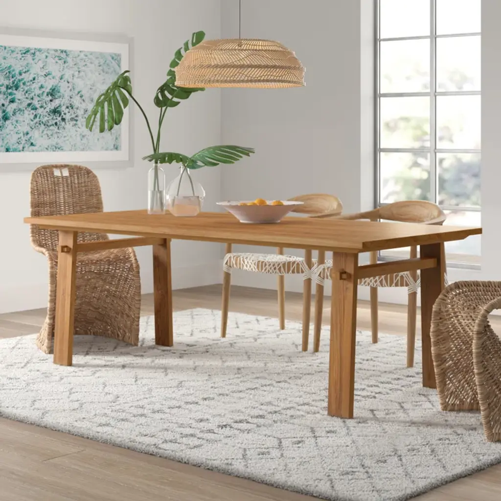With its artisanal look and feel, this rectangular dining table instantly enhances any space. It's crafted from solid teakwood in a natural tone that highlights the wood grain variation, and the top rests on four slightly flared legs. Inspired by traditional Javanese furniture, this table features prominent joinery for a dose of character – plus, it comfortably caters to a party of six. Looking for some style inspo: A bold centerpiece or vase of fresh flowers is always a hit.
