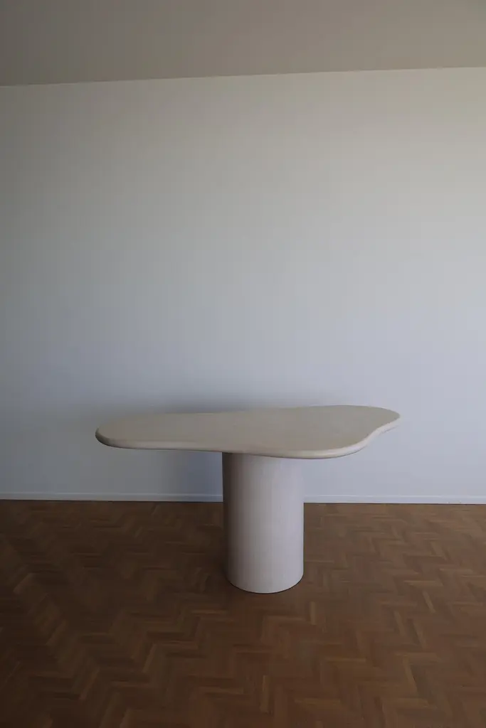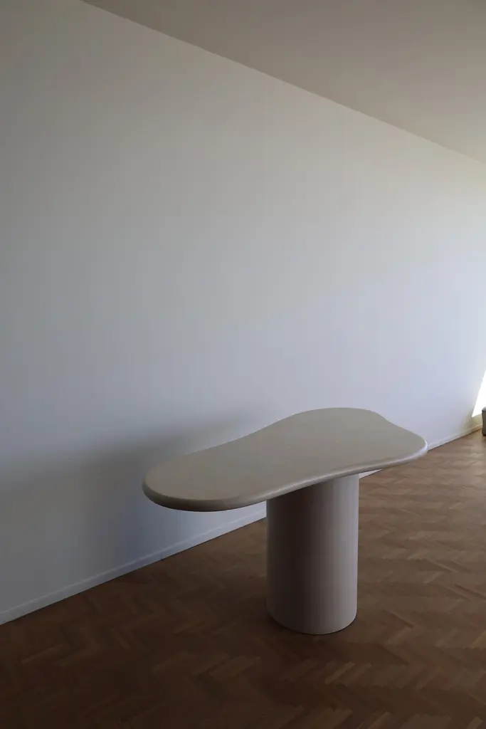 Akemi Dining Table by KasanaiDimensions: D 79 x W 160 x H 76 cm.Materials: Lime plaster.Also available in different dimensions and colors. Please contact us.At once fluid and structured, the Akemi table is an artistic talking point for any modern living room. We’ve created this table from durable, textured mortex for a natural, organic look that breathes new energy into the home. Available as a coffee table or dining table.KASANAI was founded in 2021 by interior designer Virginie Steeland. Inspired by the complexity of finding minimal yet refined pieces for her own home, she decided to create her own.Believing strongly in the role interior design plays in mindful beings, we used the principles of minimalism to create objects that are timeless and durable. Shying away from the throw-away culture we strongly believe in investing in high-quality pieces that make your home a peaceful environment. We’d like to inspire you to contribute to a slow-living kind of mindset where less is always more and every piece is seen as an investment. Something that outlives trends and can be enjoyed for many years to come.