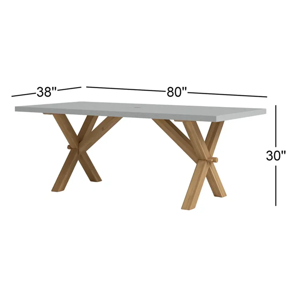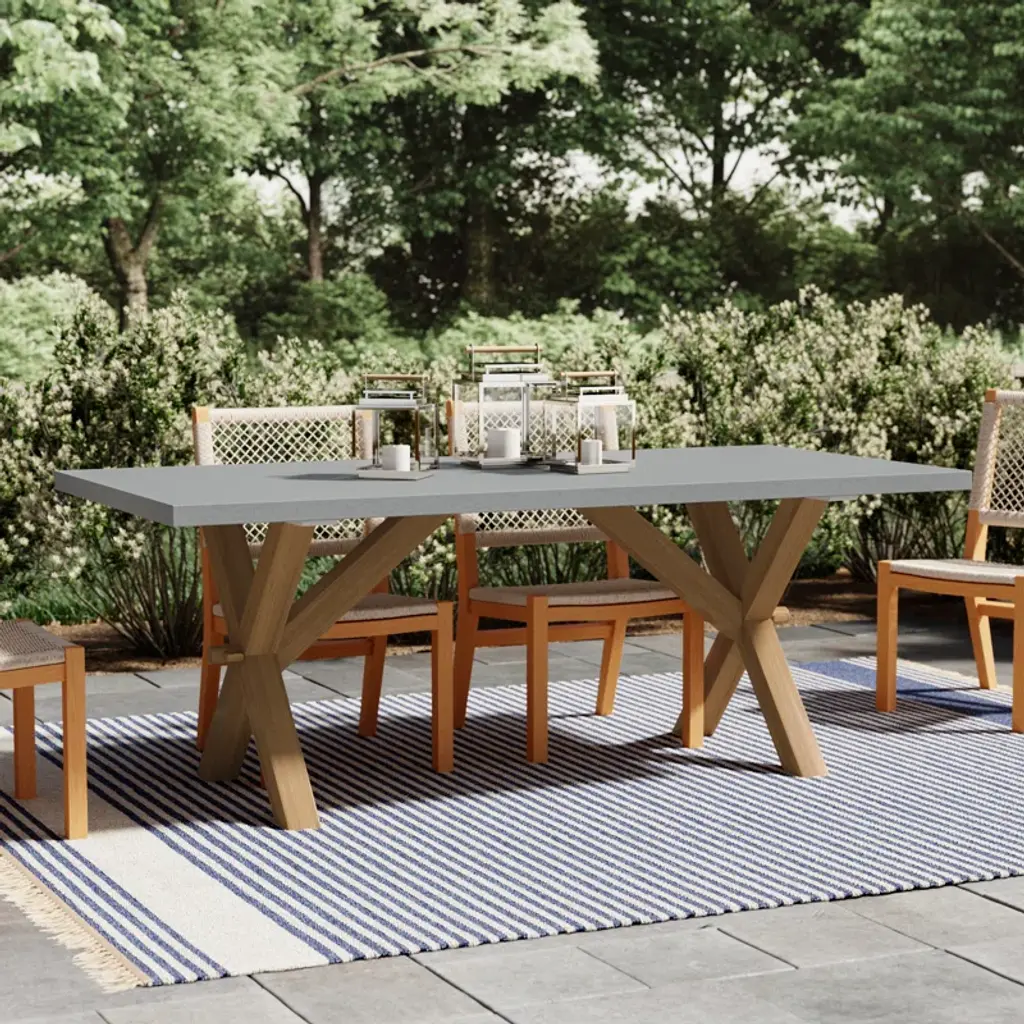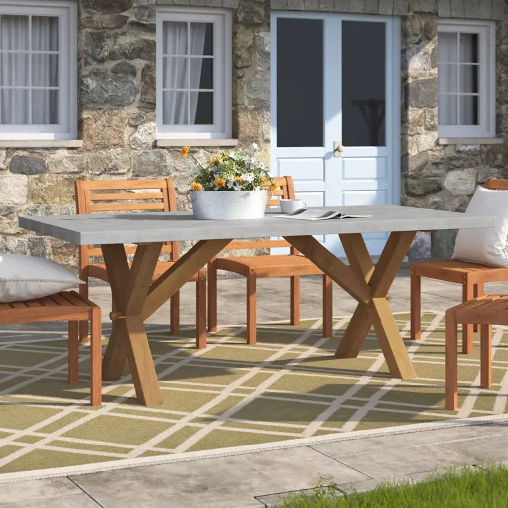 This outdoor dining table will come in handy if you love serving up homemade meals out on the back patio. We love how the trestle-inspired base is made from naturally weather-resistant teak wood – just apply oil every once in a while to keep it looking its best. The rectangular tabletop is made from a poly-concrete blend in a gray finish that is water-, UV-, and mildew-resistant. Measuring 80" wide, you can fit six to eight people comfortably.