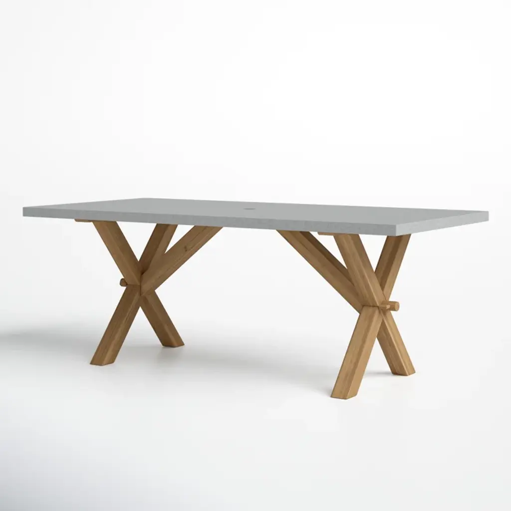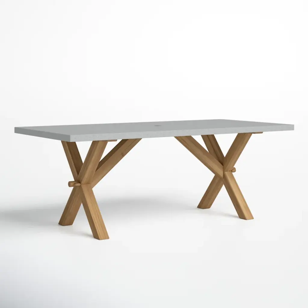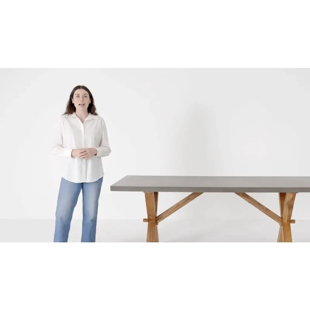 This outdoor dining table will come in handy if you love serving up homemade meals out on the back patio. We love how the trestle-inspired base is made from naturally weather-resistant teak wood – just apply oil every once in a while to keep it looking its best. The rectangular tabletop is made from a poly-concrete blend in a gray finish that is water-, UV-, and mildew-resistant. Measuring 80" wide, you can fit six to eight people comfortably.