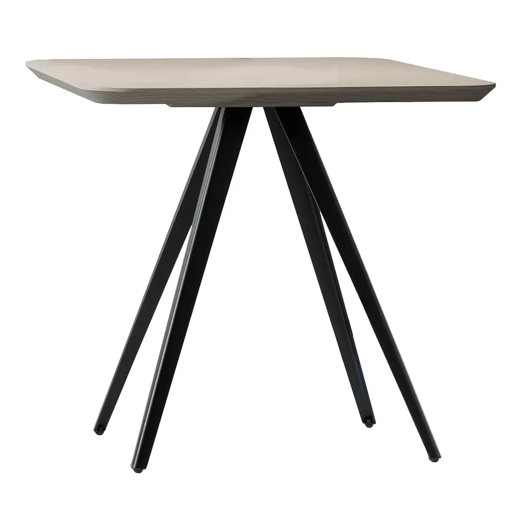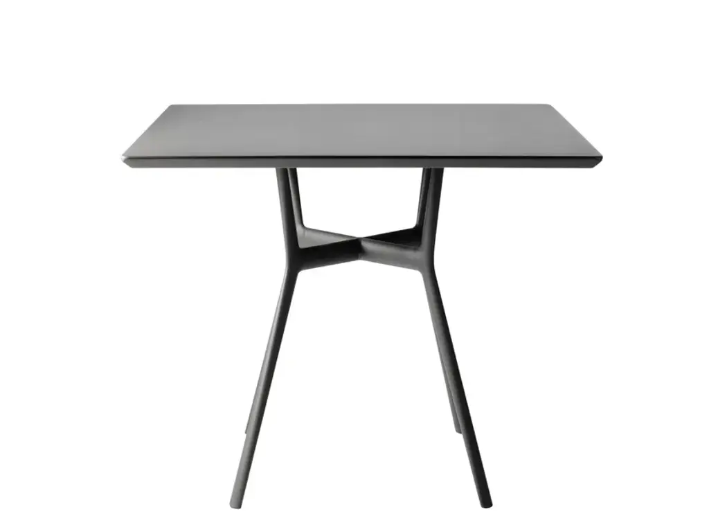 Dining table with painted metal or solid wood base and square or round wooden tabletop from the AKY collection, designed by Emilio Nanni.