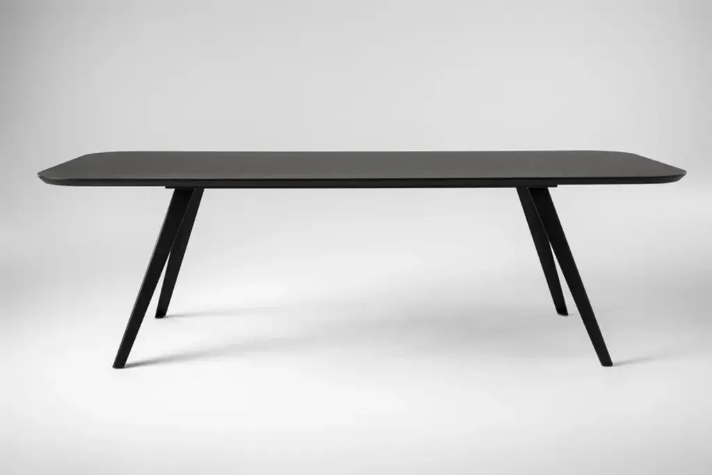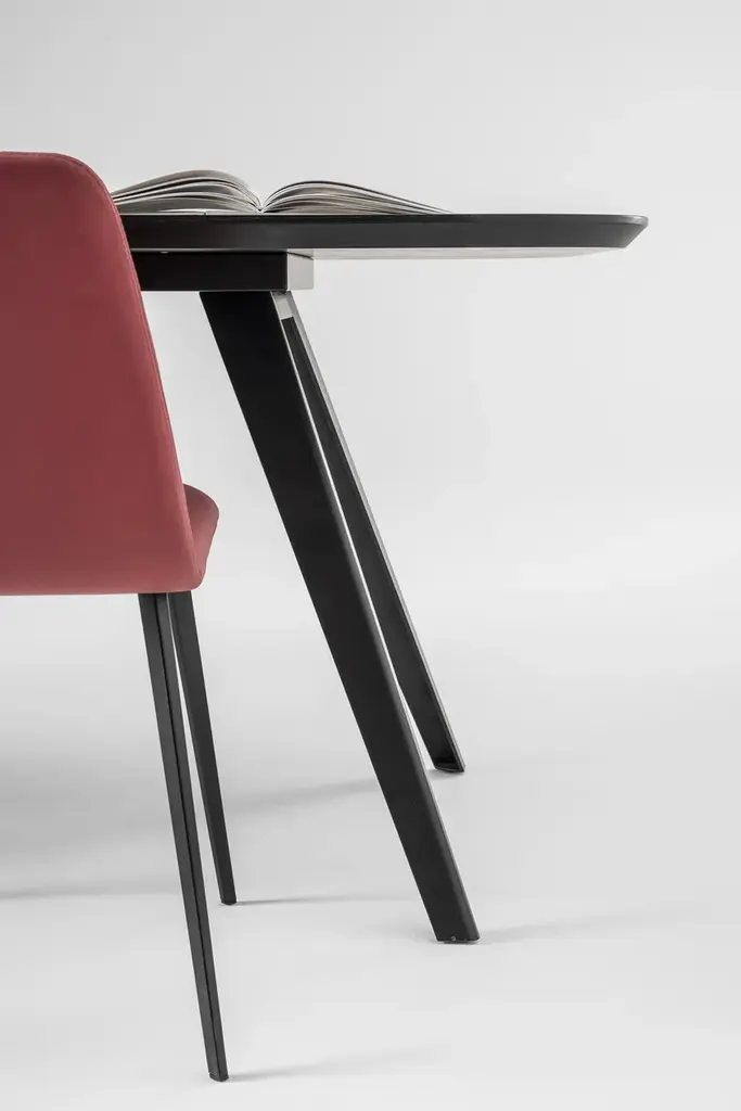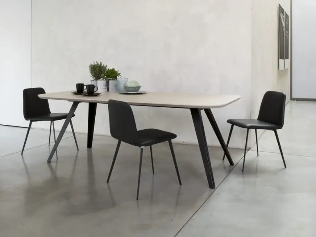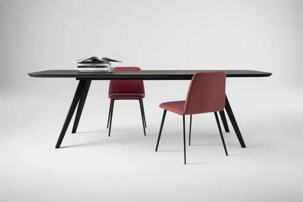 Dining table with painted metal base and rectangular, round or suare solid ash, veneer or laminated tabletop from the AKY collection, designed by Emilio Nanni.