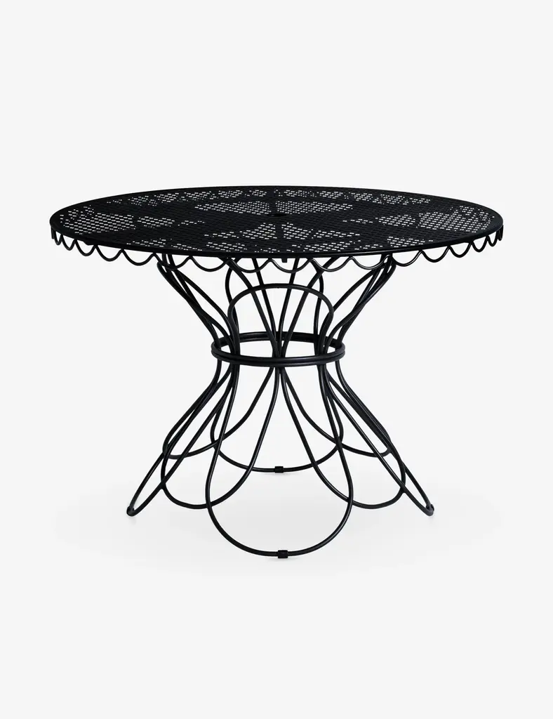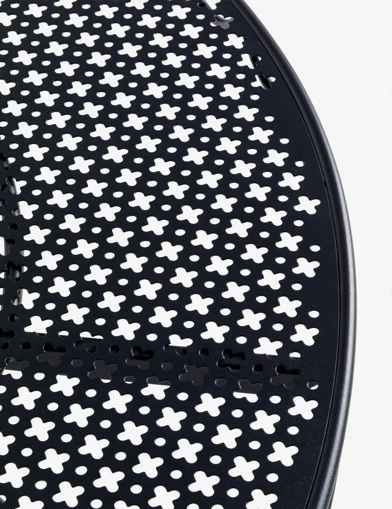 Make it your chicest season yet with this bistro-style table from Business & Pleasure Co. The charming silhouette belies a resilient steel design with several high-grade coatings for lasting elegance outdoors. This round dining table includes an umbrella hole with space below to accommodate most standard umbrella bases.