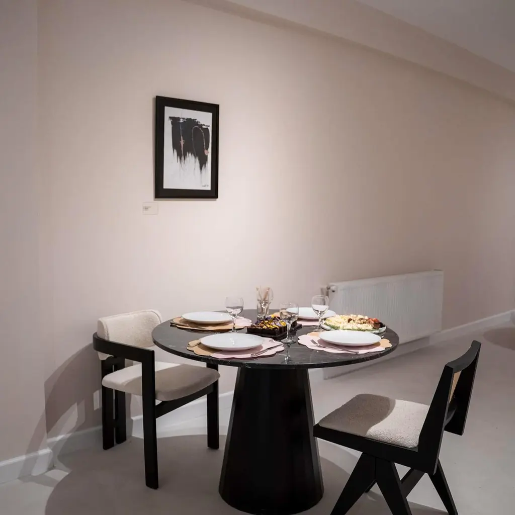 TRAVERTINE DINNER TABLE / MARBLE DINING TABLEType of Marble: Alexander BlackDimensions: 40 Inches (100 cm)Leg Model: WoodCustomizable: Available!Production Time: 3-4 WeeksShipping Cost: Free!Package Method: Wooden PalletWe customize all of our furnitures (dining tables, coffee tables, tv units, consoles etc..) in terms of sizes, colour, leg models etc..If you don't like the legs, you may also change them!We deliver our tables by DHL. It generally takes 5-9 days.