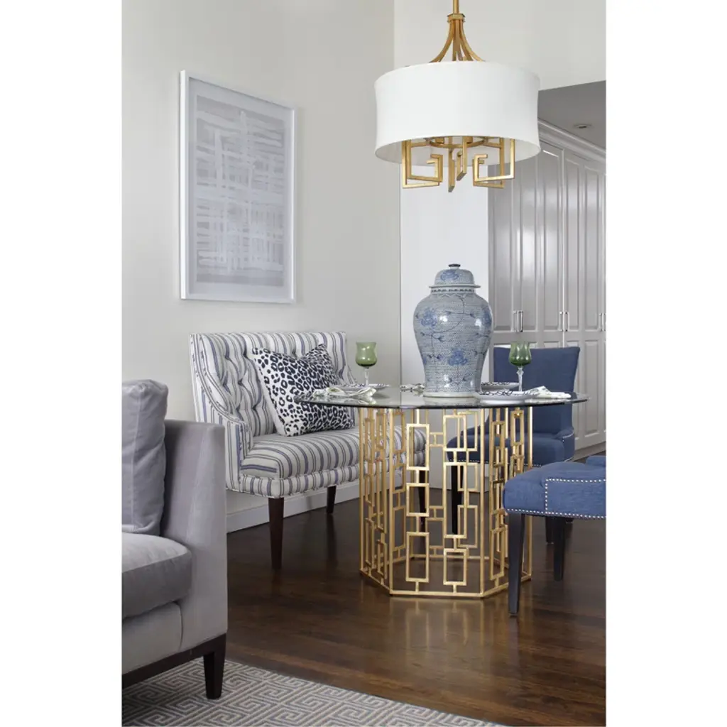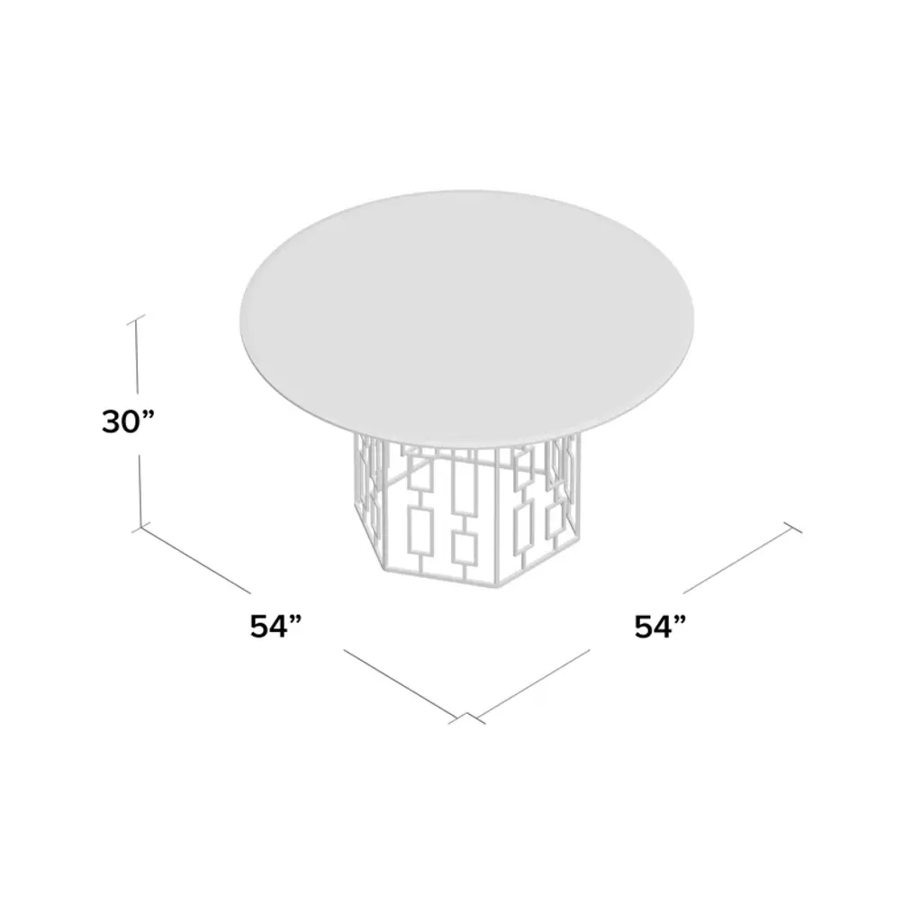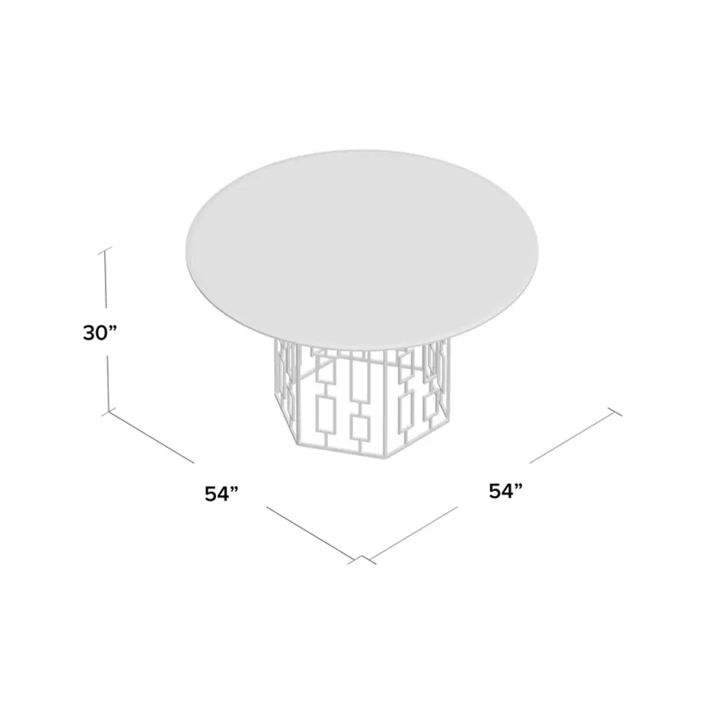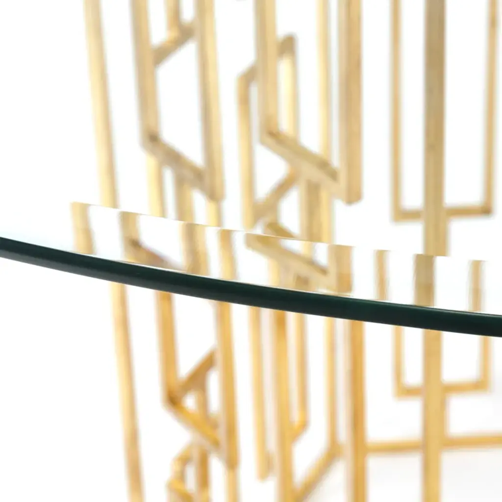 A golden touch for the gracious host, the Alexandra Dining Table is a contemporary masterpiece, alive with the magic of modern geometry and sculptured sophistication. The strength of iron and elegance of gold leaf effortlessly support its round glass top.