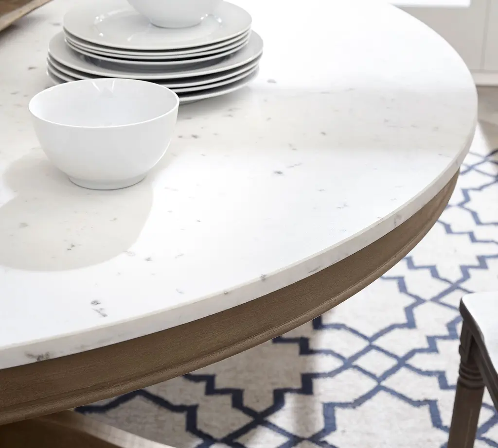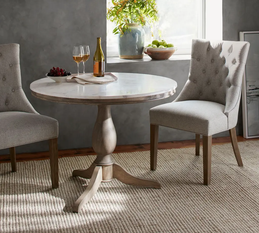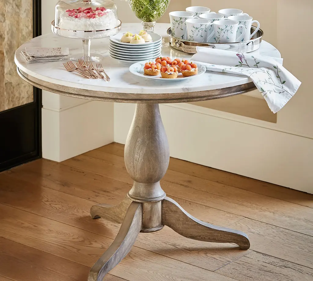 The Alexandra Marble Collection proves that marble and wood are a classically cool combination. The solid wood frame is finished with a weathered gray wash that accentuates natural variations in the grain.